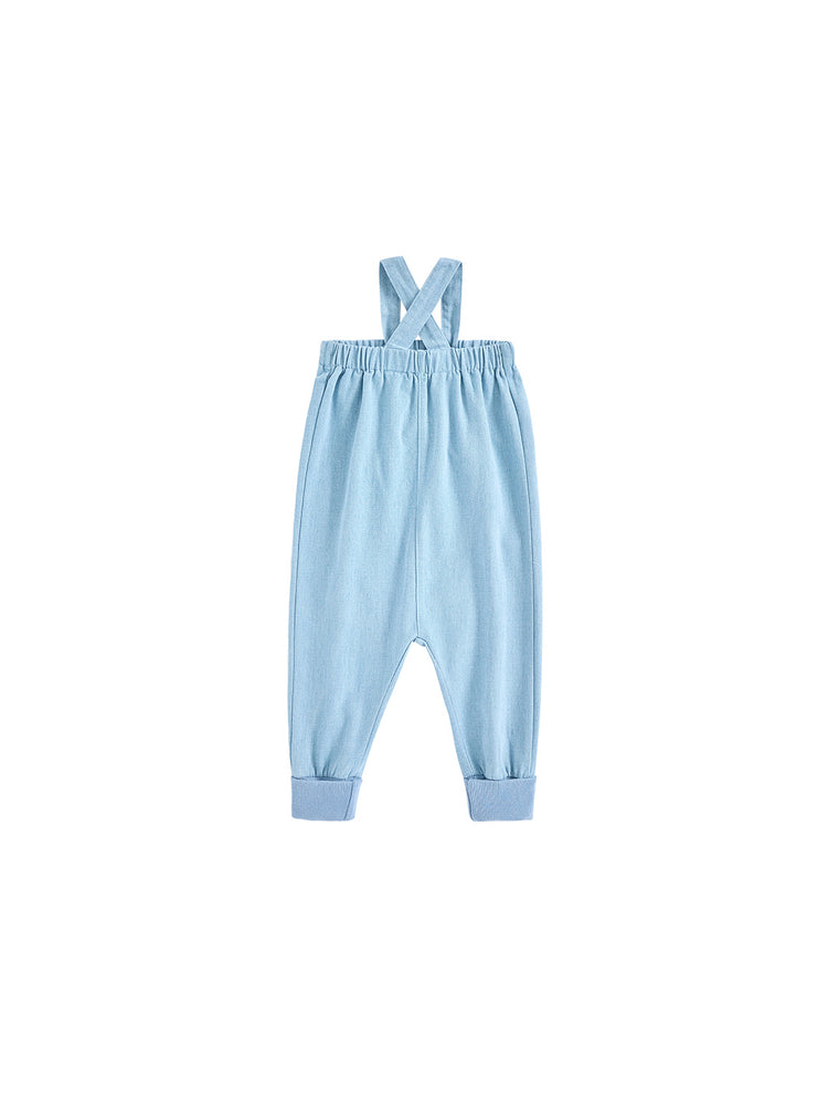 1 Pc. Denim Rib Cuff Trim Overall - Pale Blue Denim