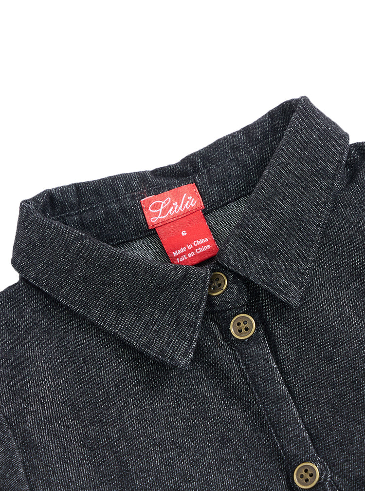 1 Pc. Denim Trim Dress - Black Denim
