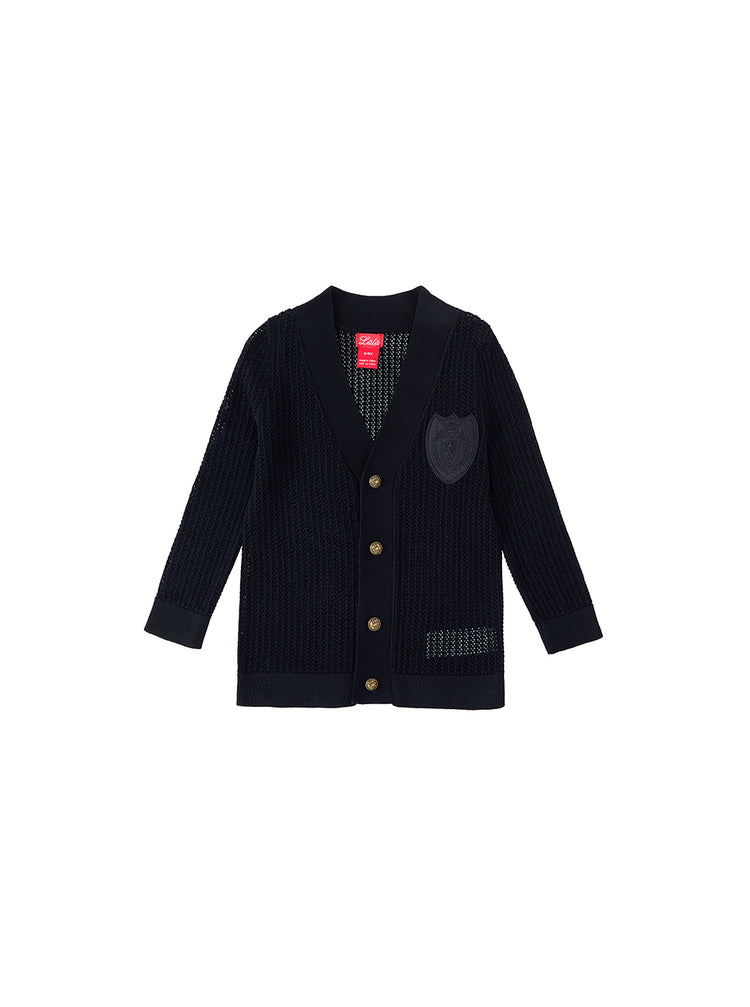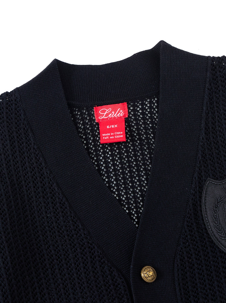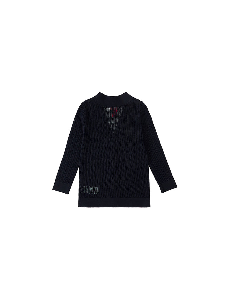 1 Pc. Cardigan Striped Eyelet Sweater - Black
