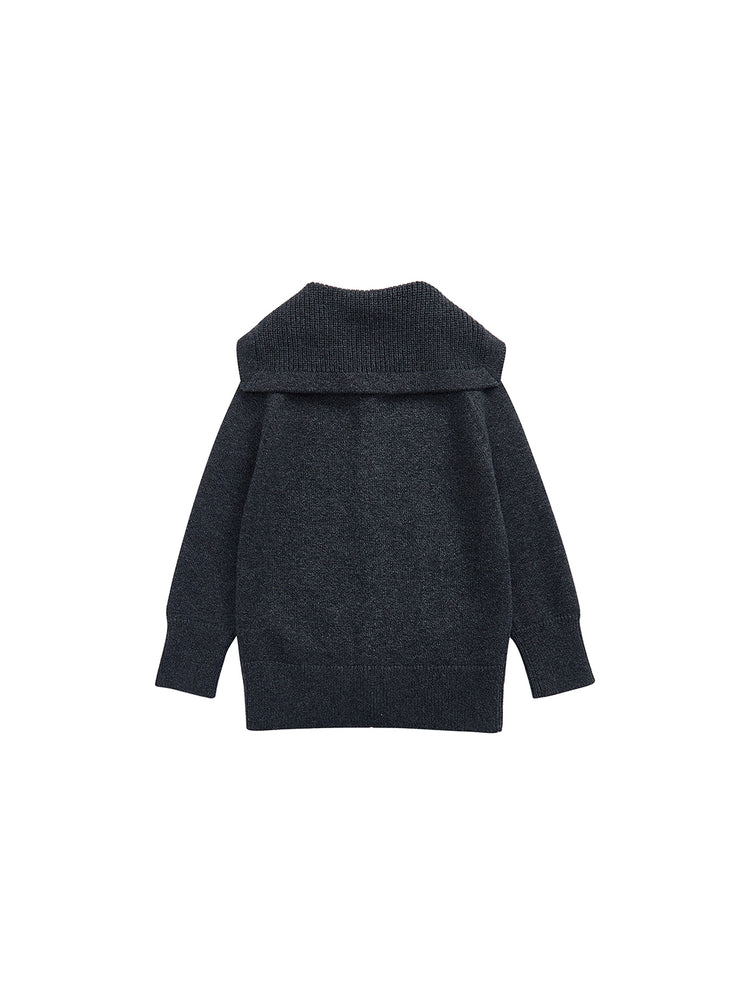 1 Pc. Big Sailor Collar Sweater - Charcoal Mélange