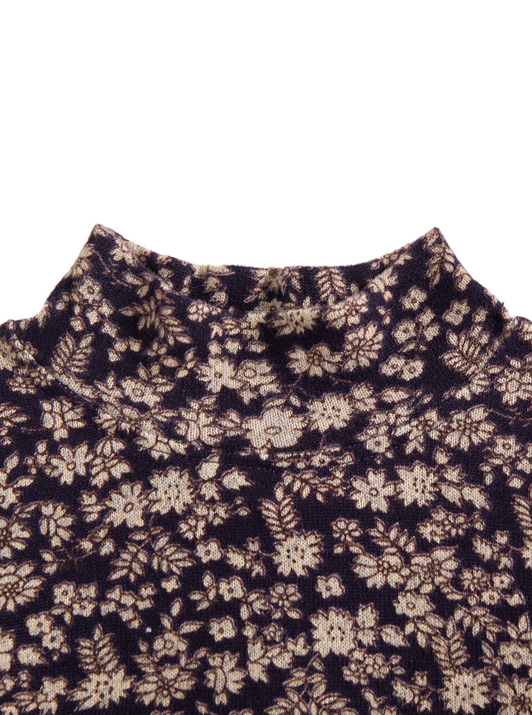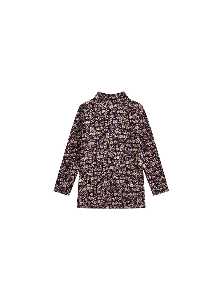 1 Pc. Floral Mock Neck T-shirt - Plum Floral