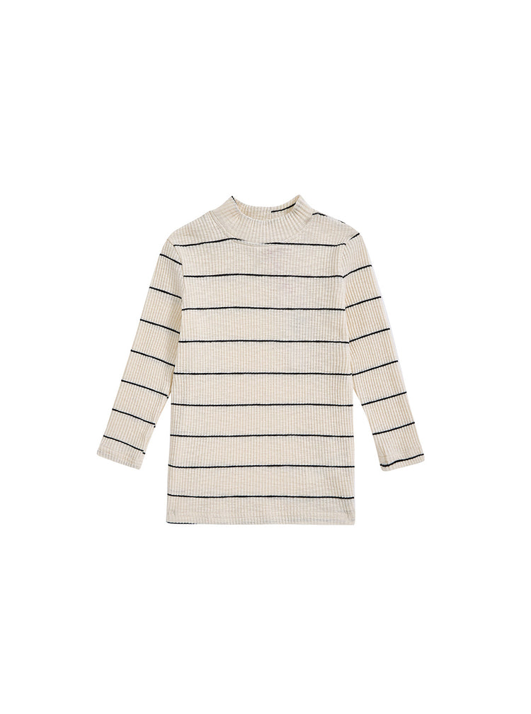 1 Pc. Striped Mock Neck T-shirt - Black/White
