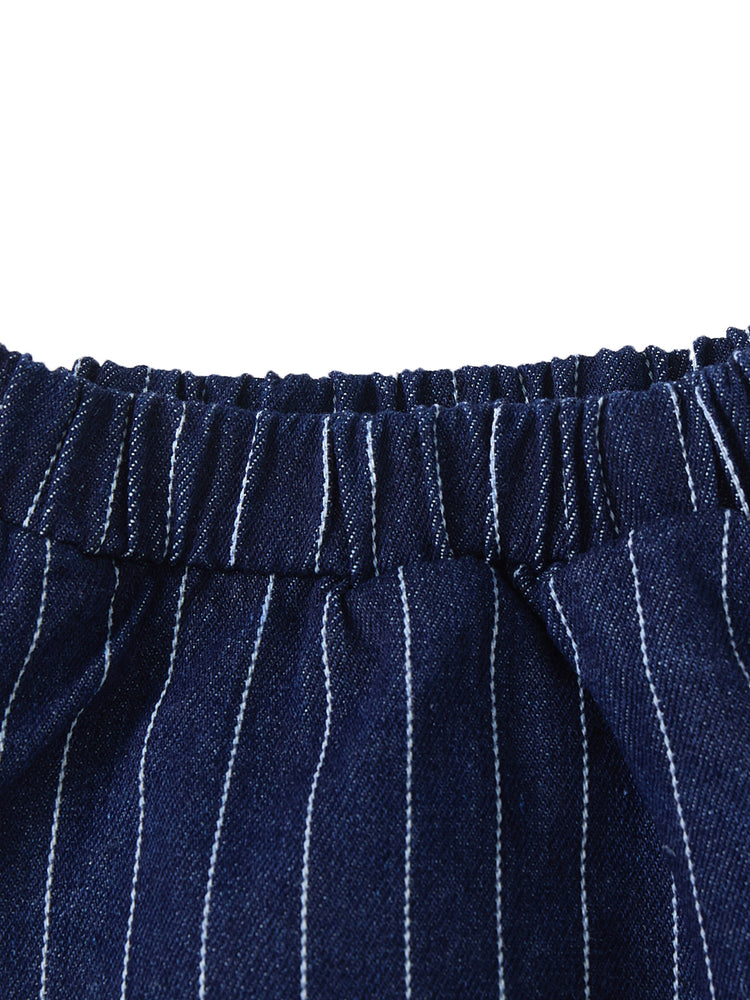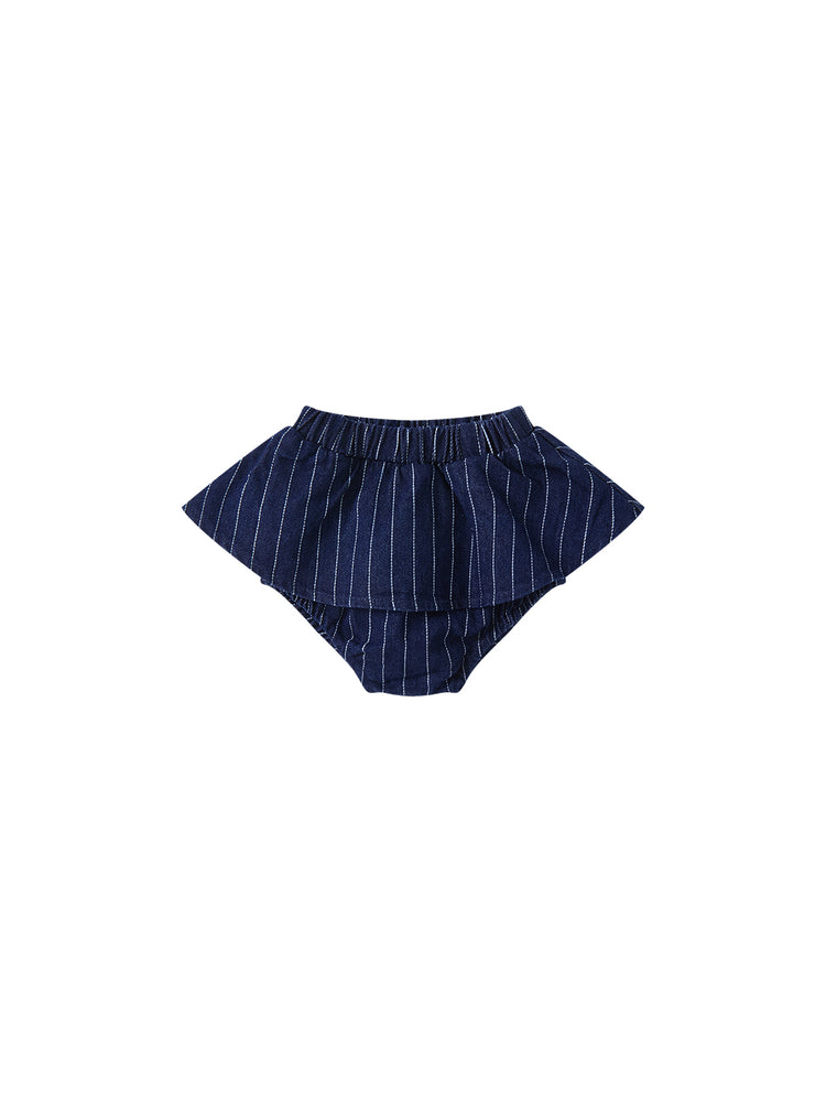 1 Pc. Denim Stripe Ruffle Bloomer - Navy