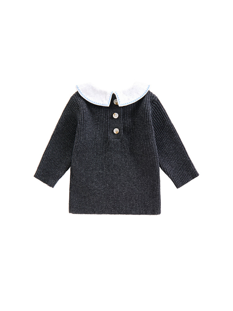 1 Pc. Pointy Collar Sweater - Charcoal Mélange