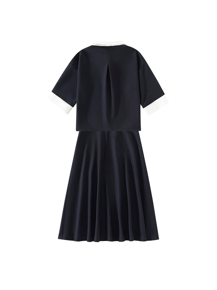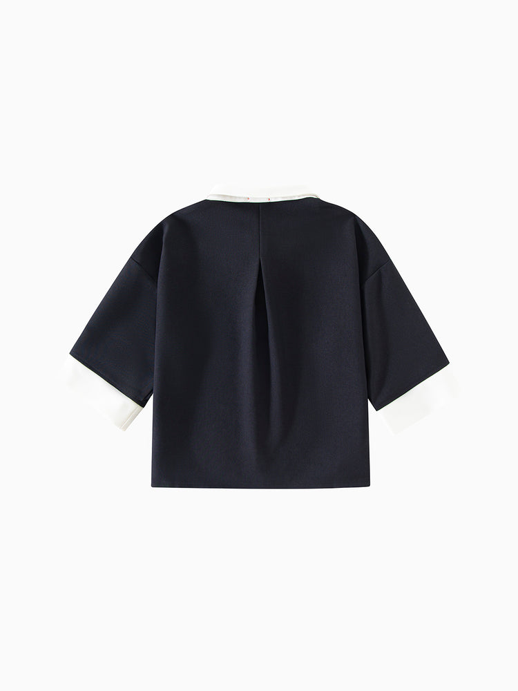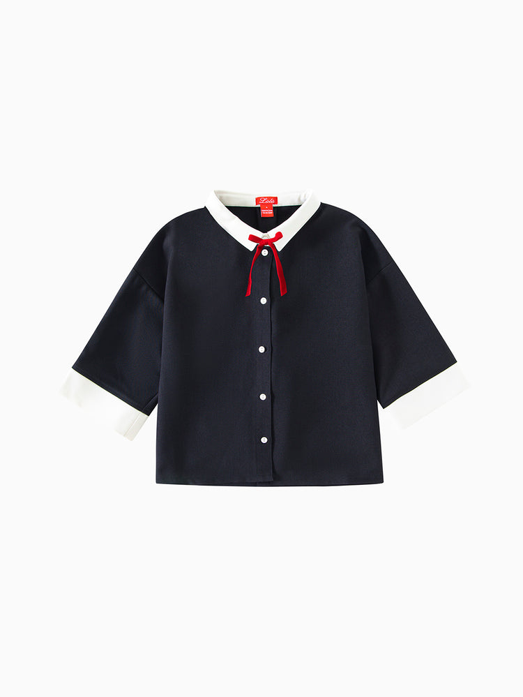 2 Pc. Classic Crop Shirt Set - Black/Red