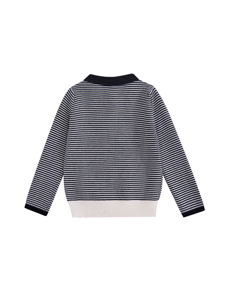 1 Pc. Collar Striped Sweater- Charcoal Mélange