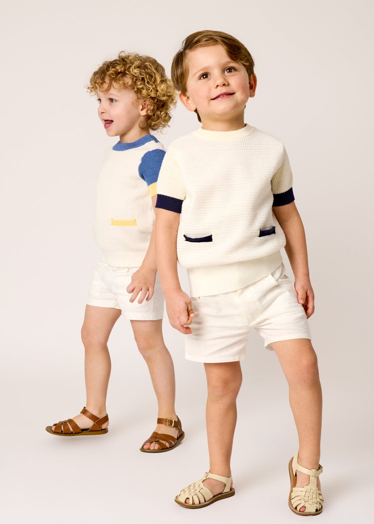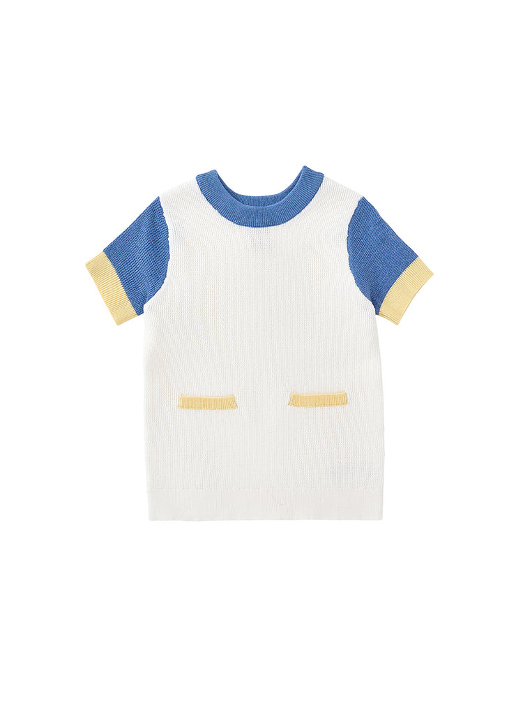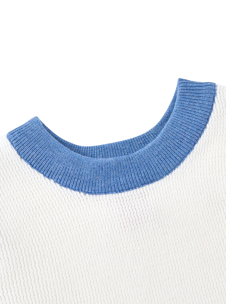 1 Pc. Color Block Short Sleeve Sweater - Cream White