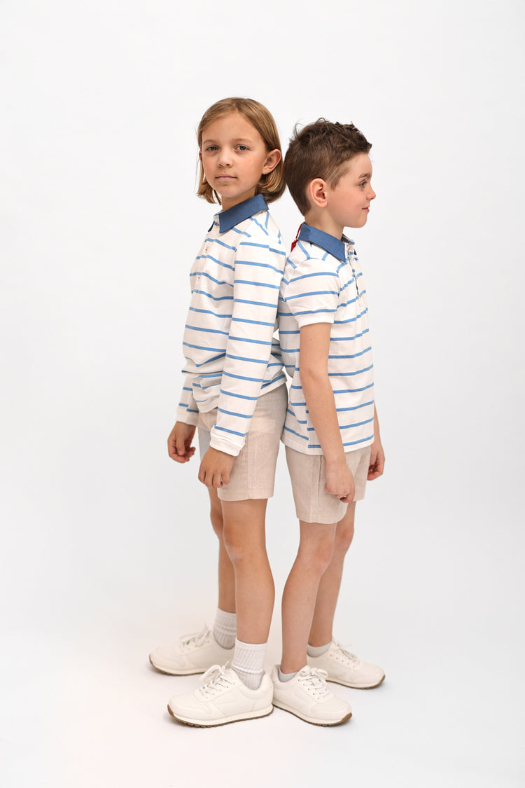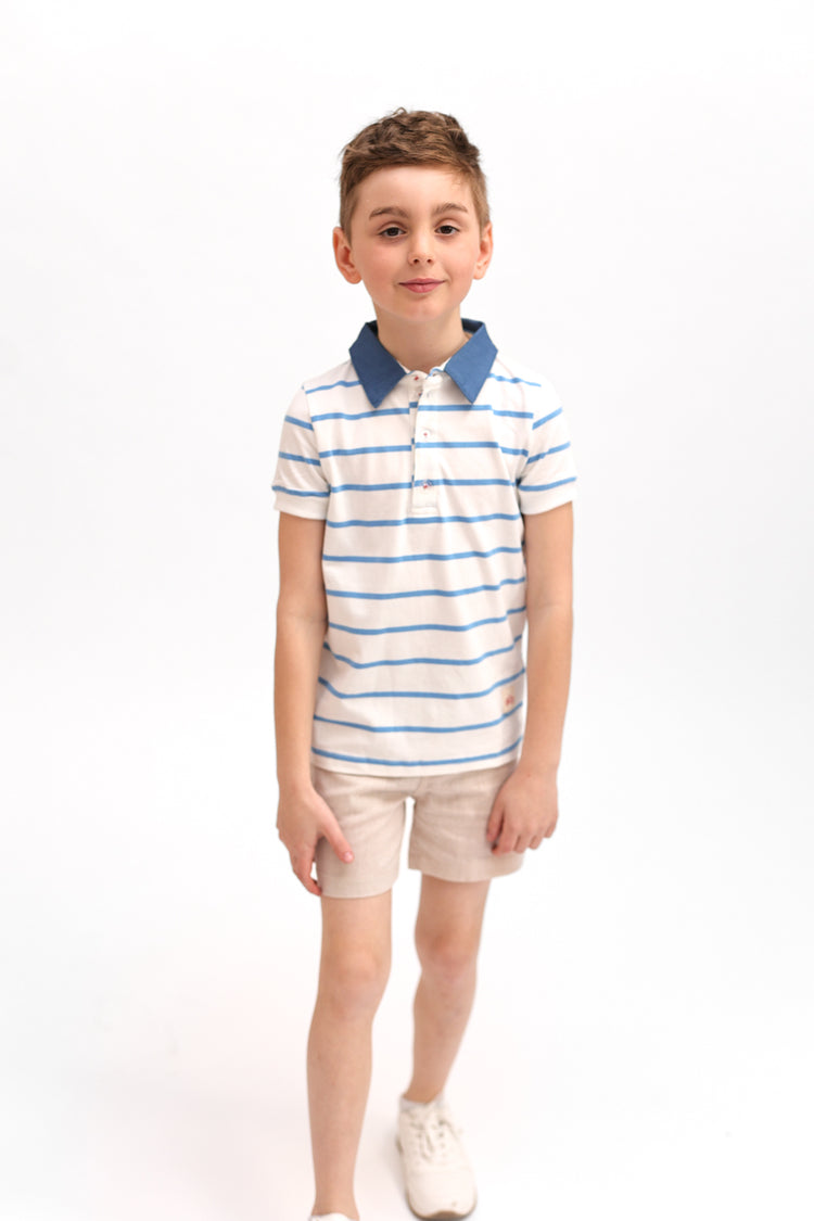 1 Pc. Combo Collar Short Sleeve Polo - White/Blue