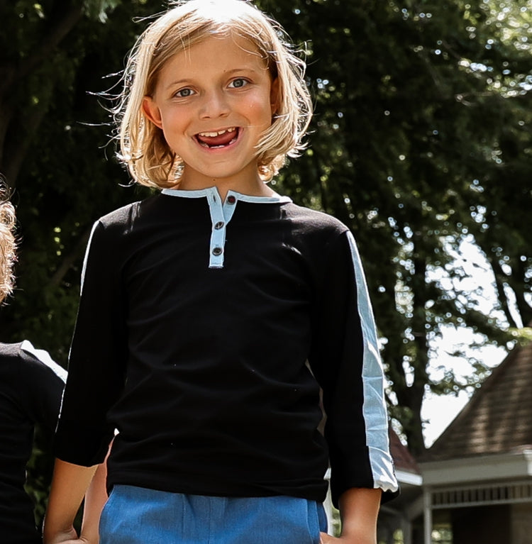 1 Pc. Denim/White Two-Tone Top - Black/Lt. Blue