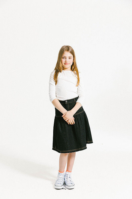 Denim Yoke Skirt - Black