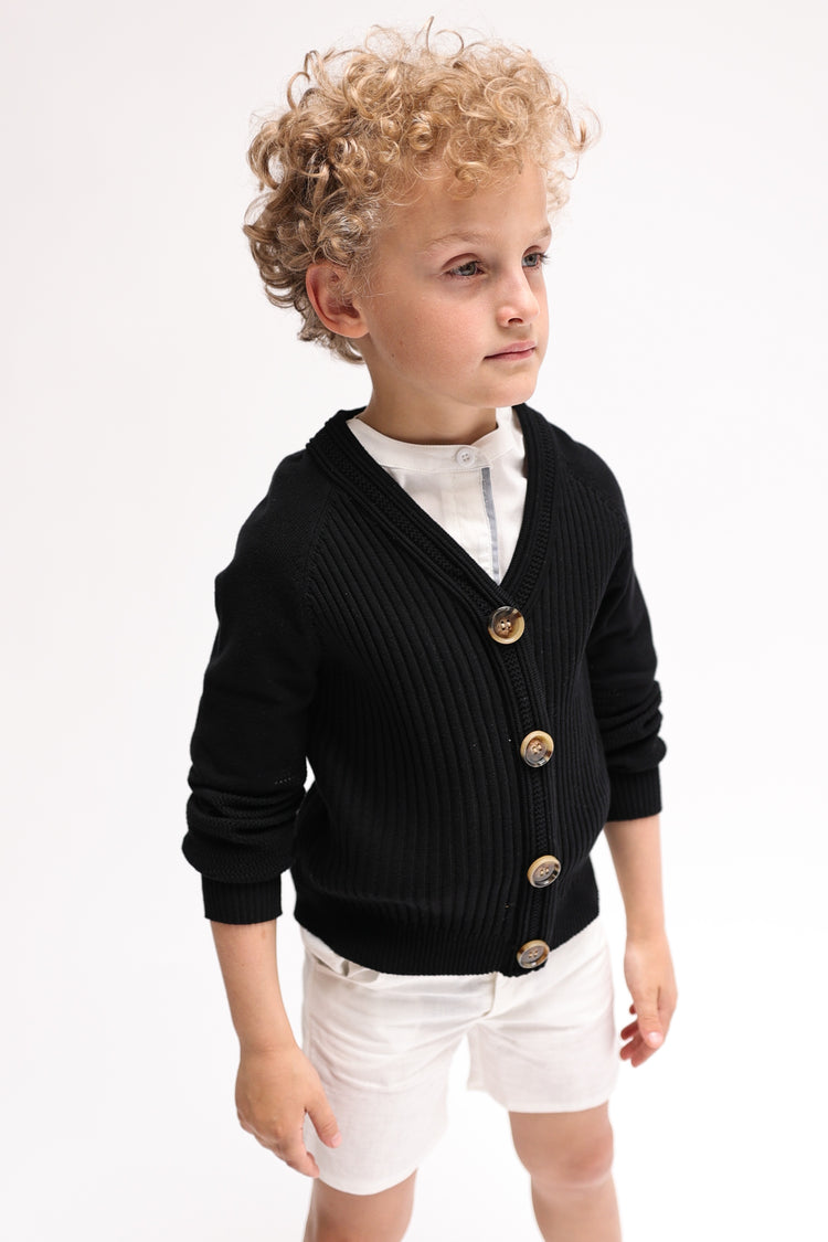 1 Pc. Eyelet Cardigan Sweater - Black