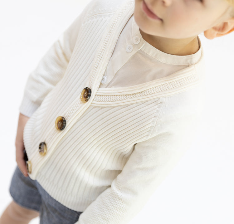 1 Pc. Eyelet Cardigan Sweater - Cream White