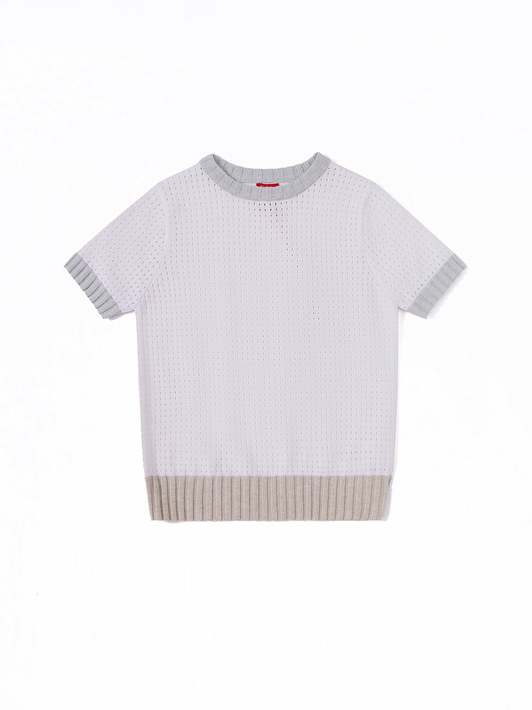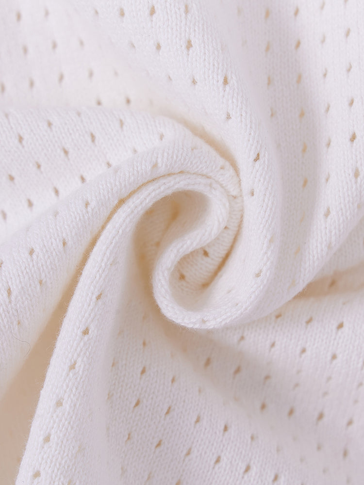 1 Pc. Eyelet Design Short Sleeve Sweater - Ivory White