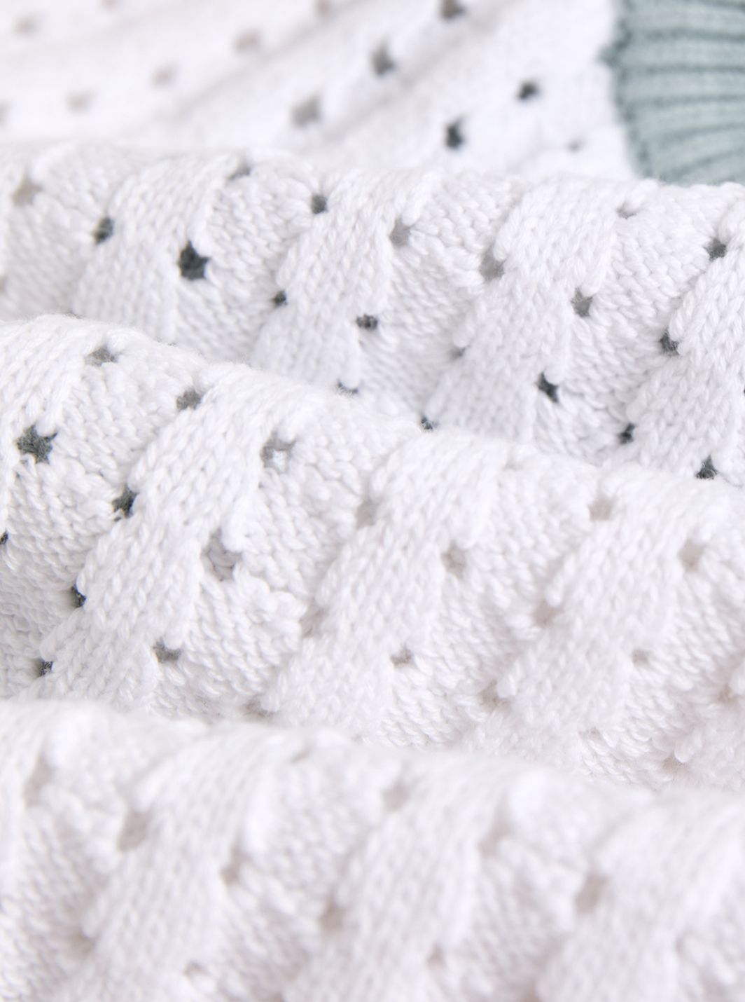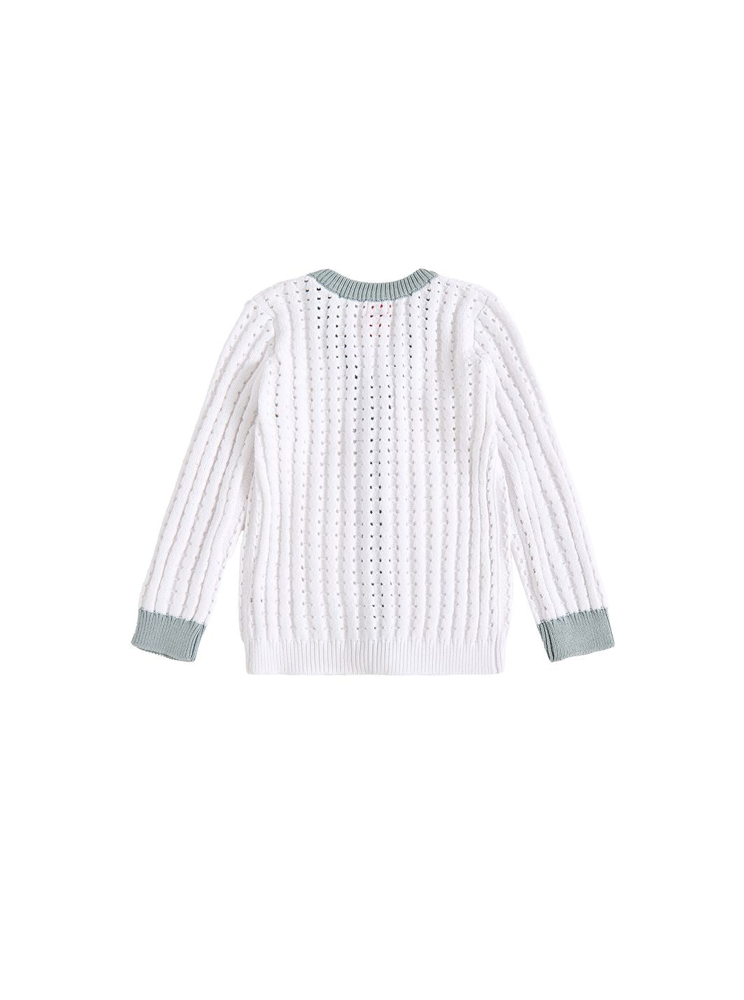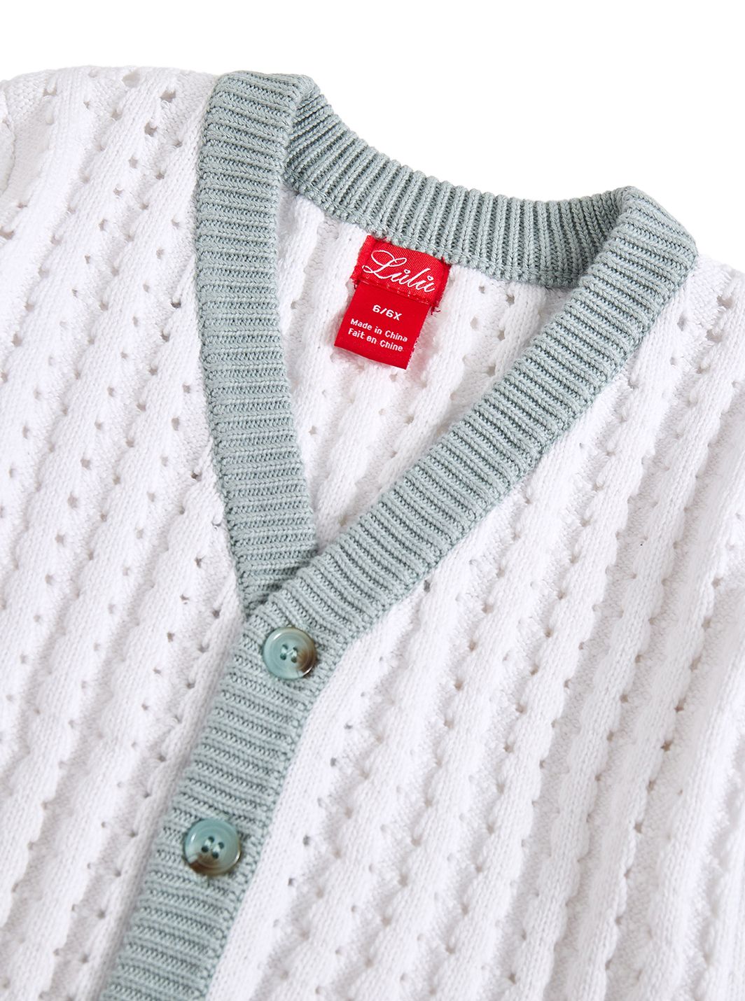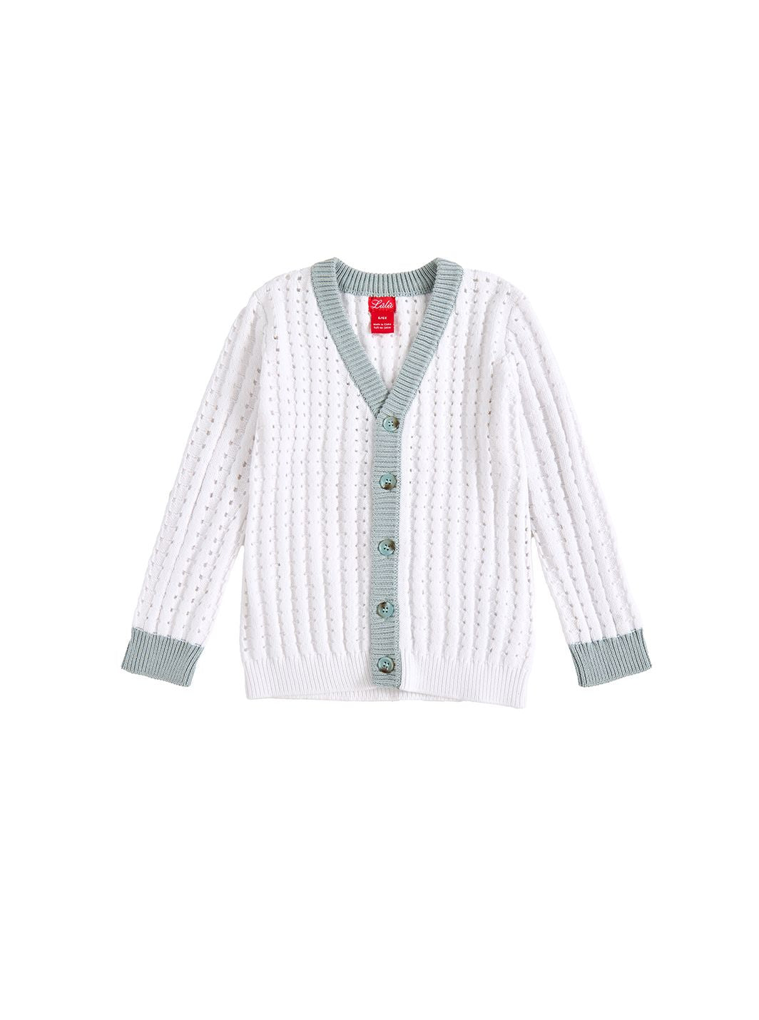 1 Pc. Eyelet Rib Stitch Cardigan - White/Smoky Lt. Blue