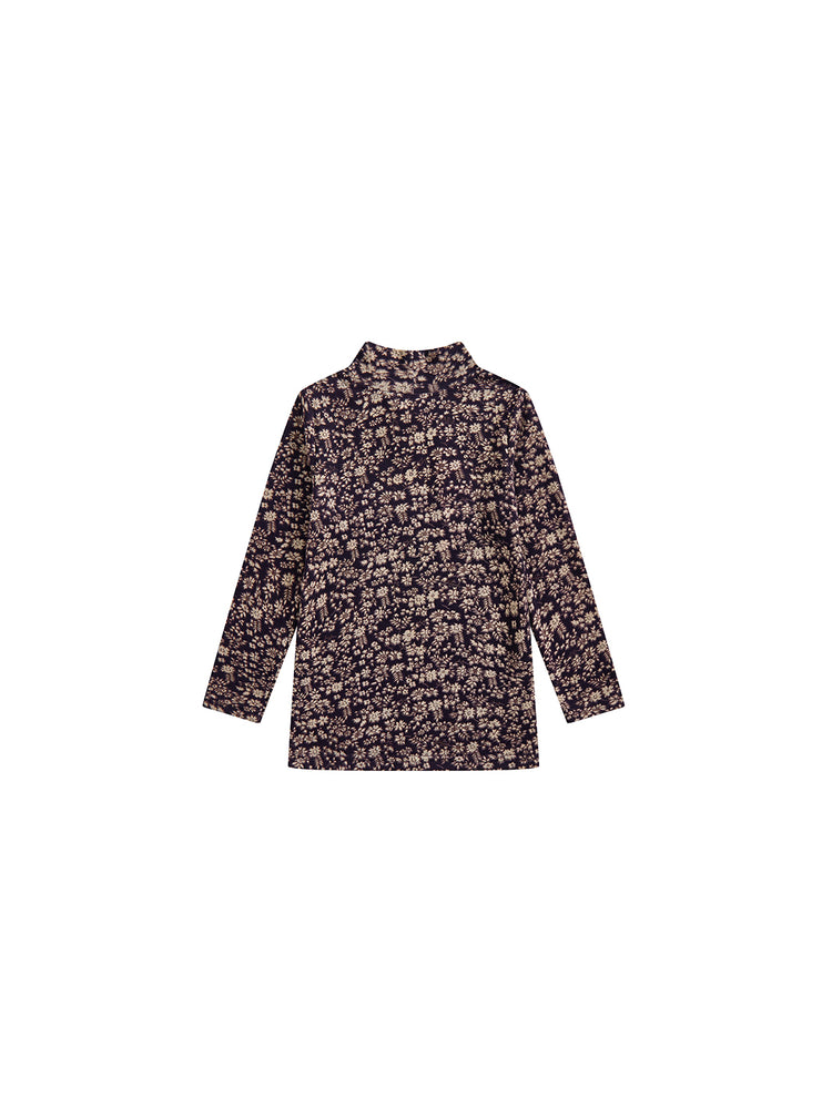 1 Pc. Floral Mock Neck T-shirt - Plum Floral