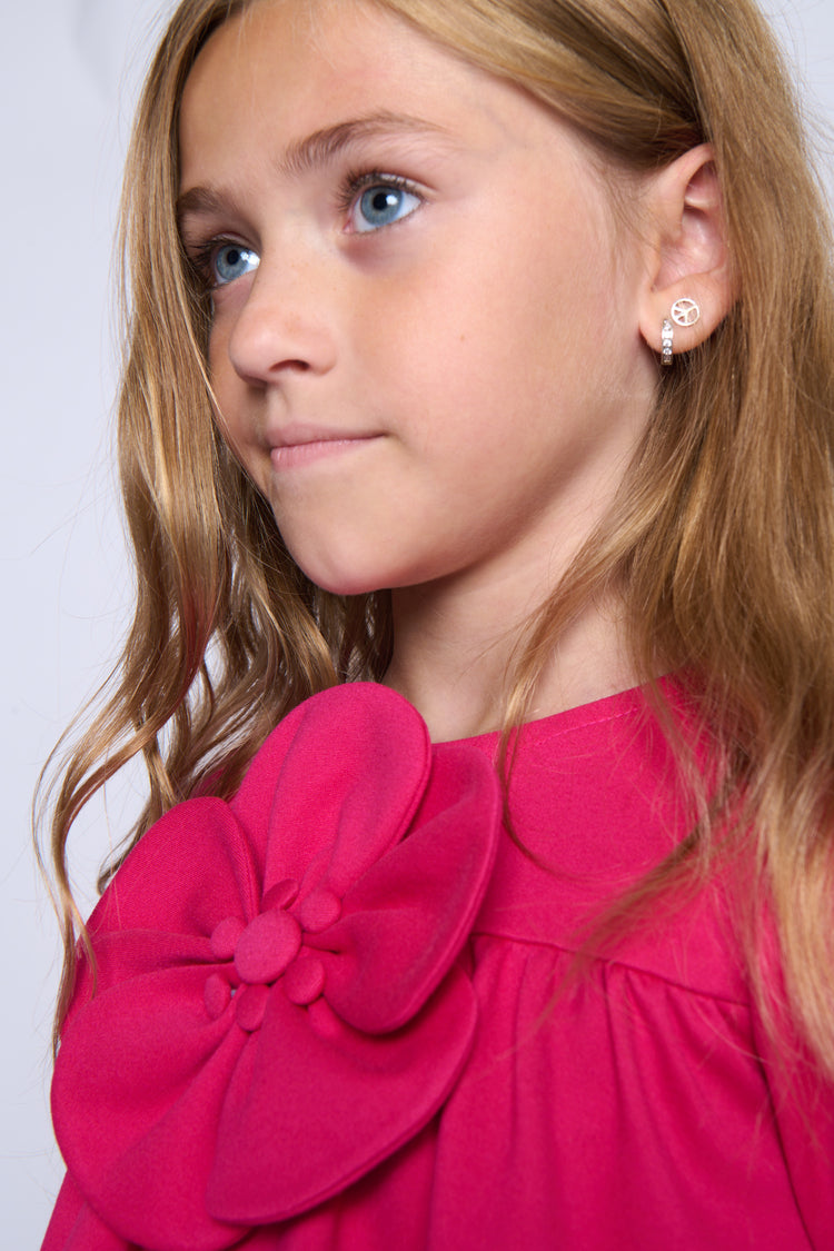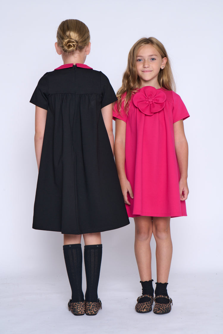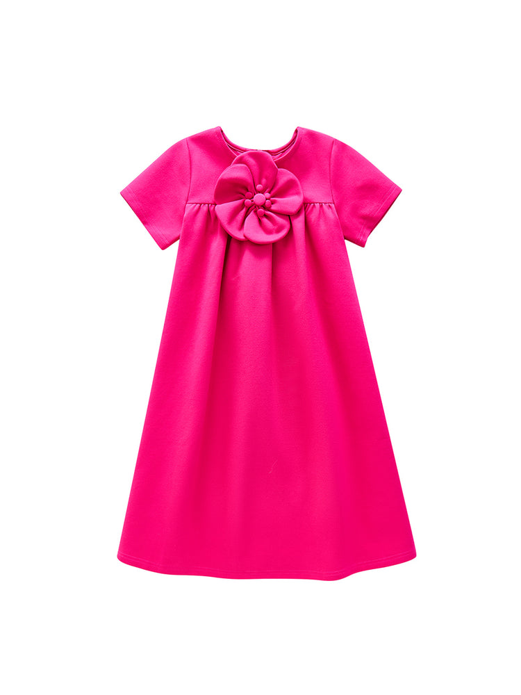 1 Pc. Flower Short Sleeve Dress - Hot Pink