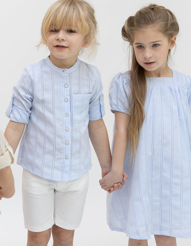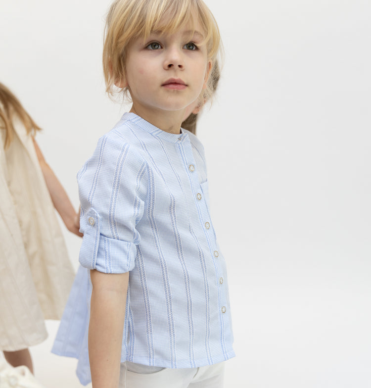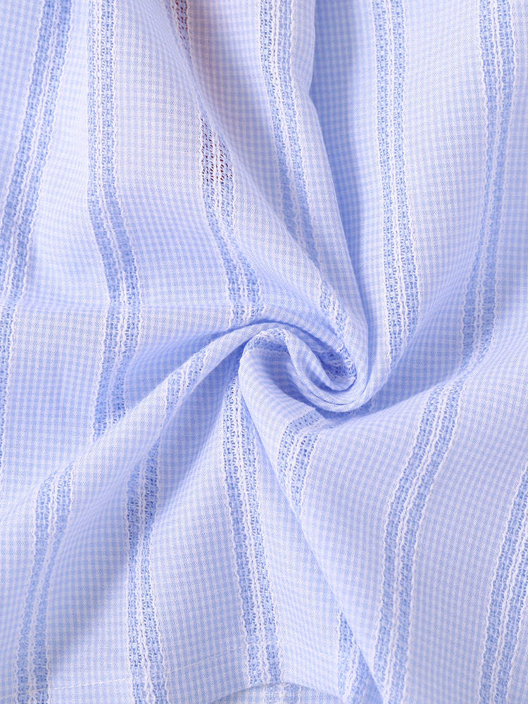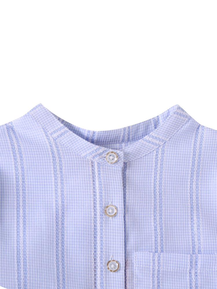 1 Pc. Gingham Crochet Striped Shirt - Lt. Blue