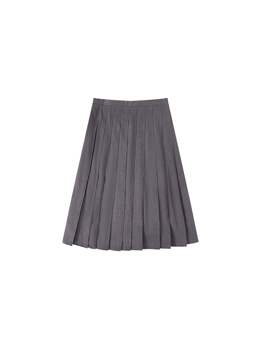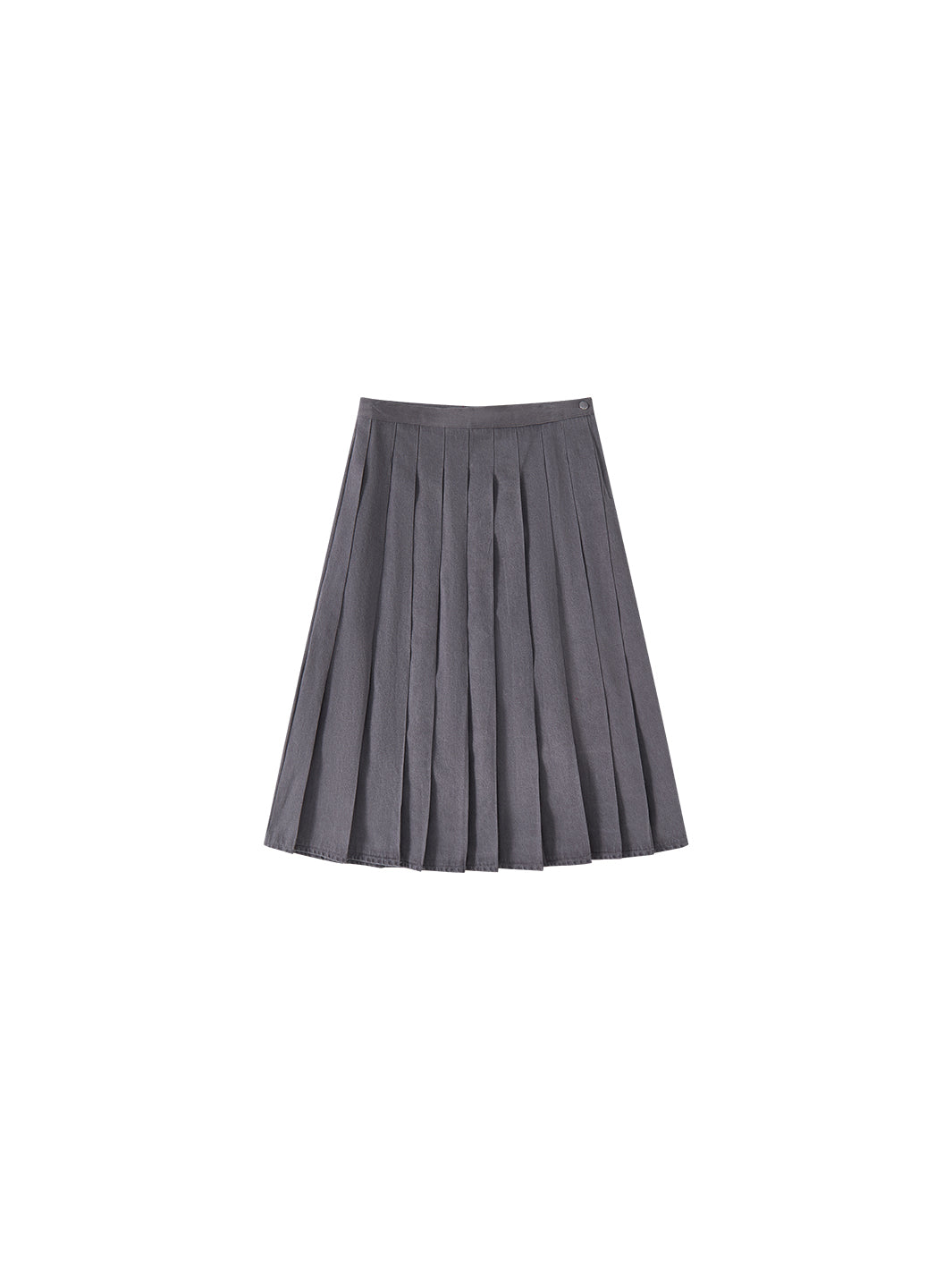 1 Pc. Grey Washed Pleated Skirt - Grey