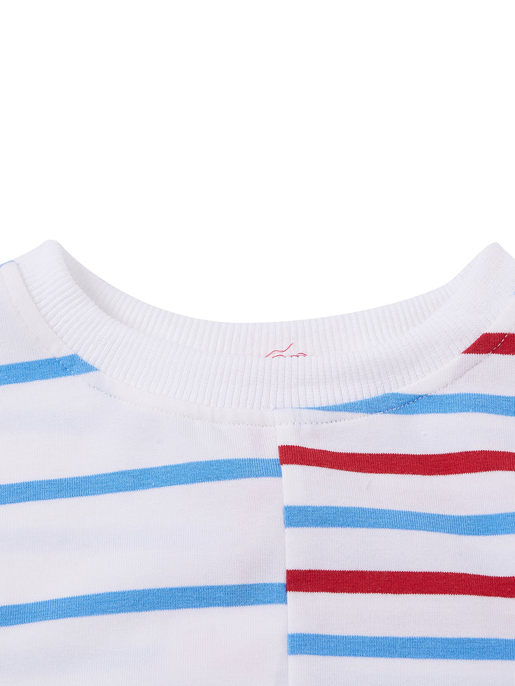 1 Pc. Half Striped Short Sleeve Top - White/Blue