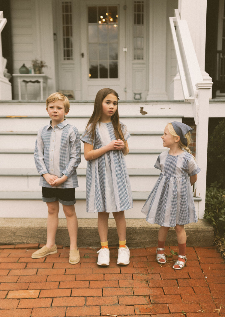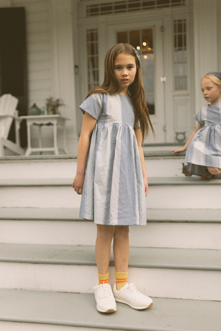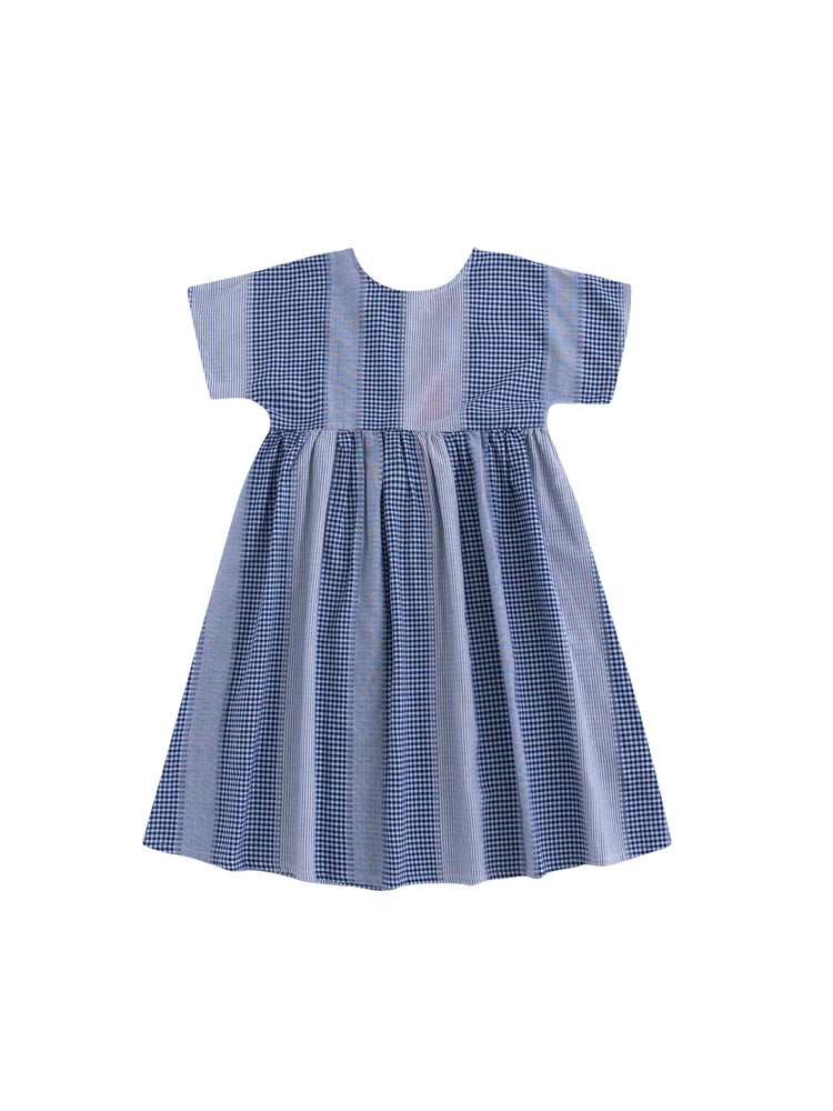 1 Pc. Patchwork Gingham Dress - White/Blue