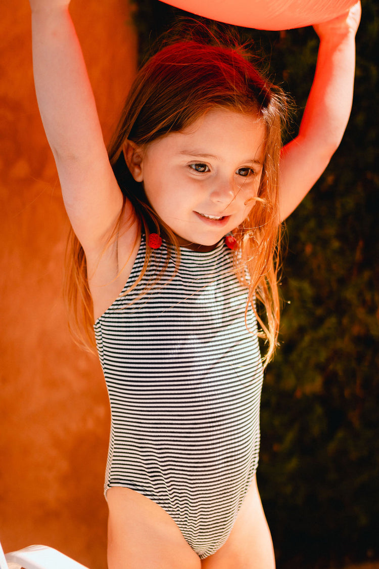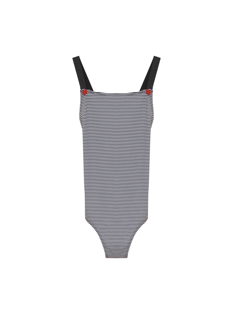 1 Pc. Seersucker Stripe Swimsuit - Black Stripe