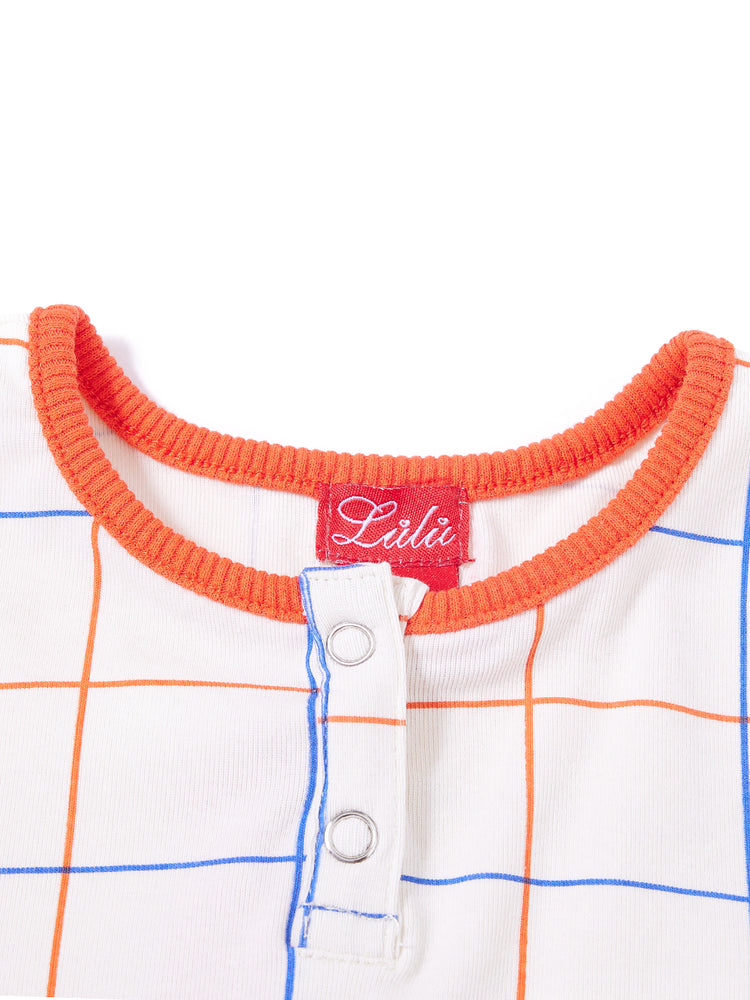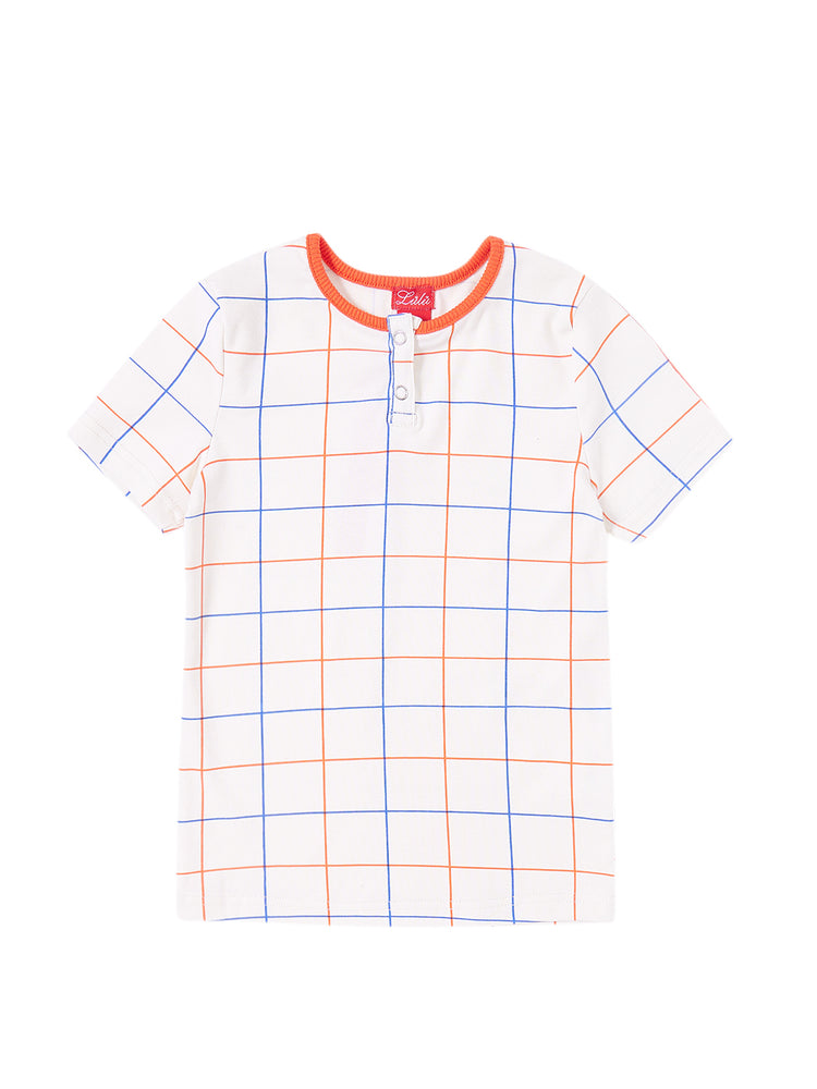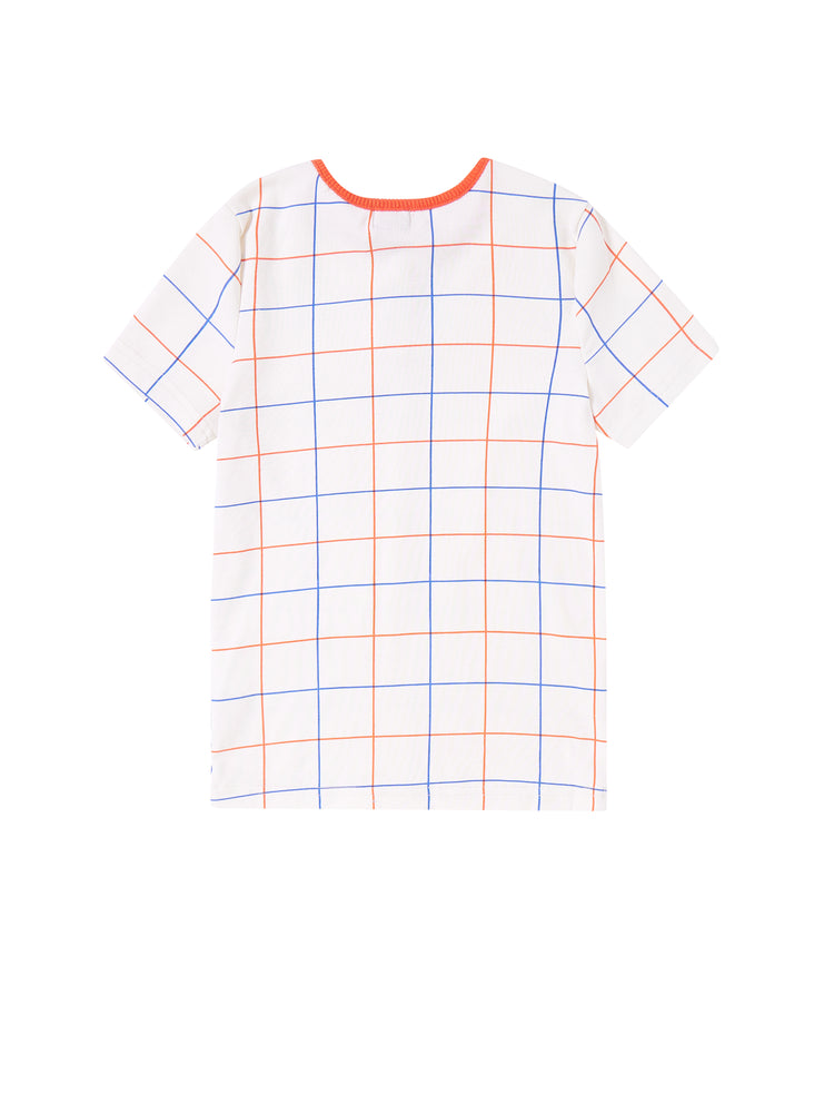 1 Pc. Square Print Short Sleeve T-shirt - Off White/Orange