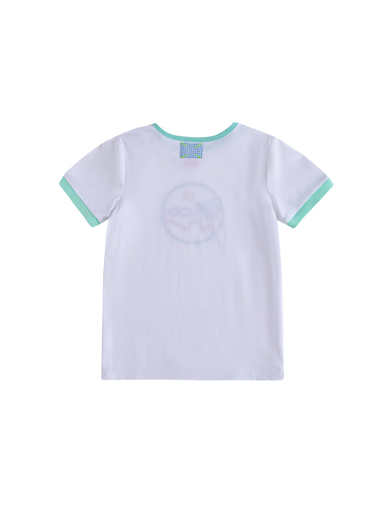 1 Pc. Summer Short Sleeve T-Shirt - White/Green