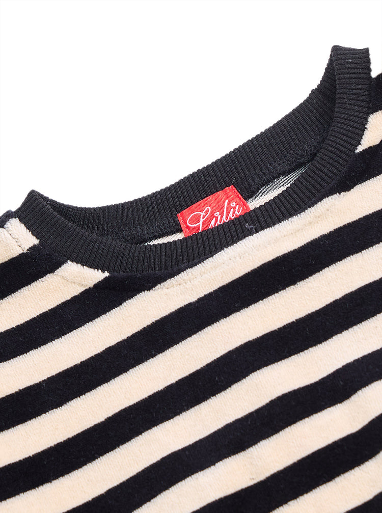 Velour Stripe Set - Black/off white