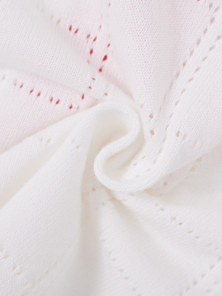 1 Pc. Square Eyelet Short Sleeve Sweater - Off White