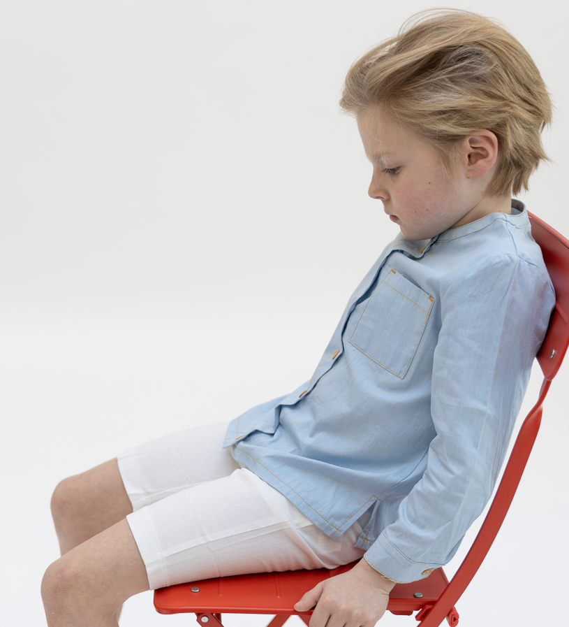 1 Pc. Solid Stitching Shirt - Pale Blue