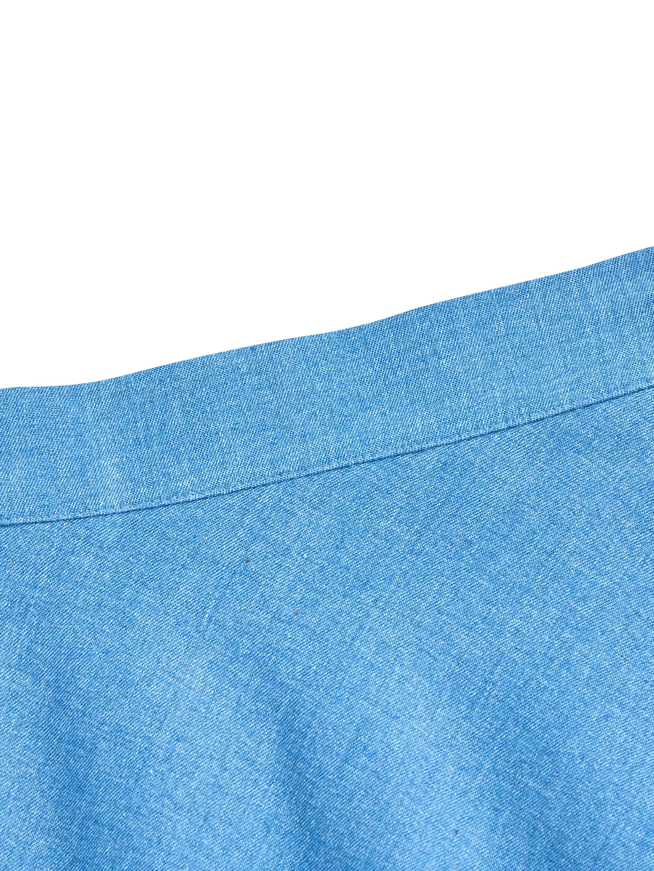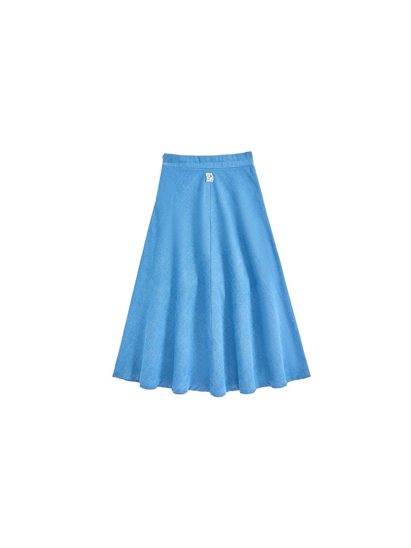 1 Pc. Denim Patch Midi Skirt - Blue Denim