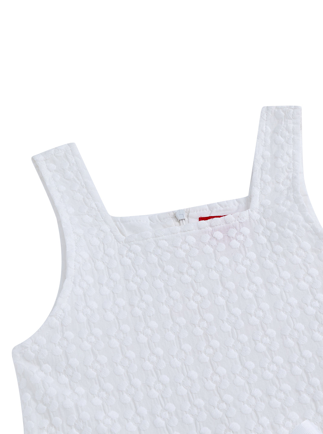 1 Pc. Embossed Flower Midi-Length Jumper - White