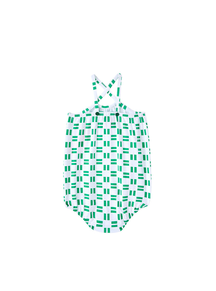 1 Pc. All Over Brick Print Romper - White/Green