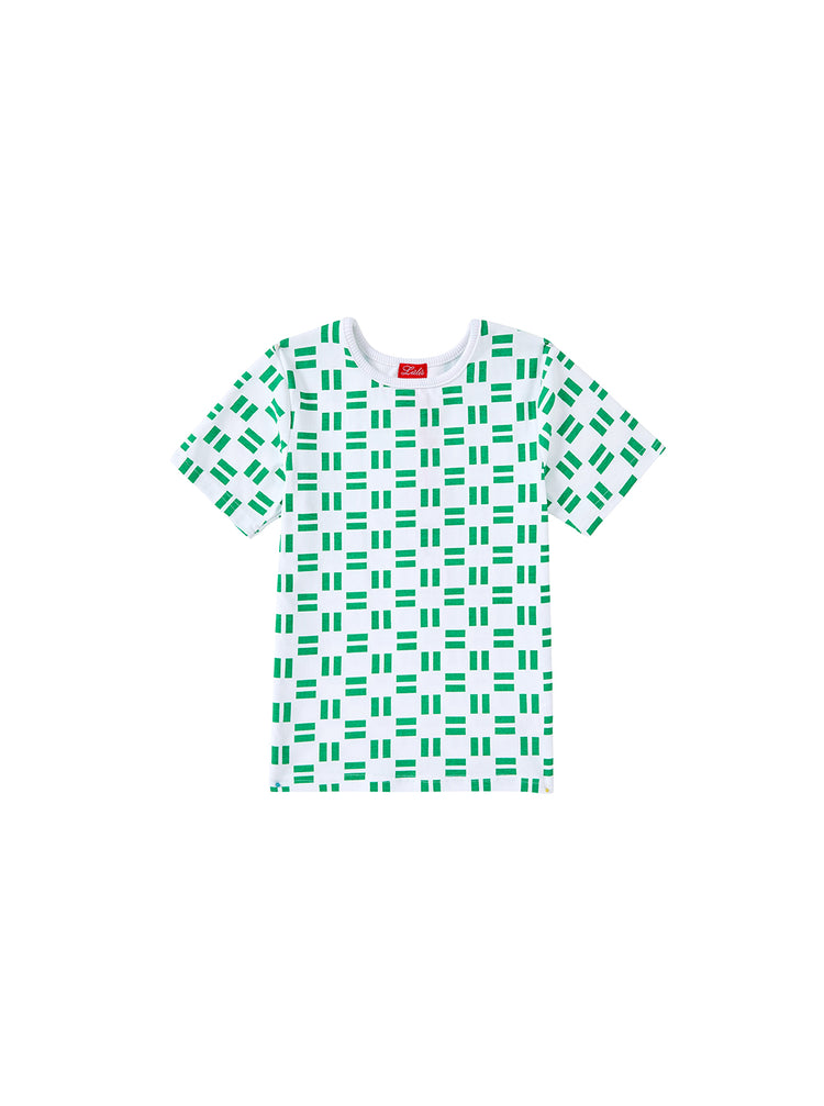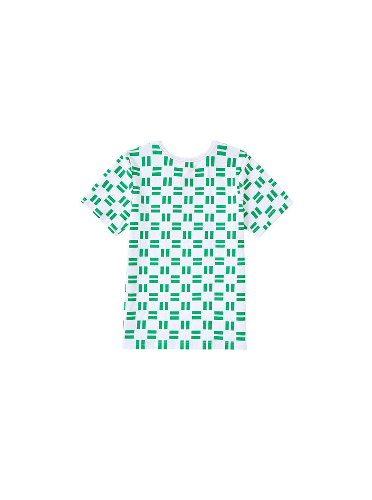 1 Pc. All Over Brick Print Short Sleeve T-shirt - White/Green