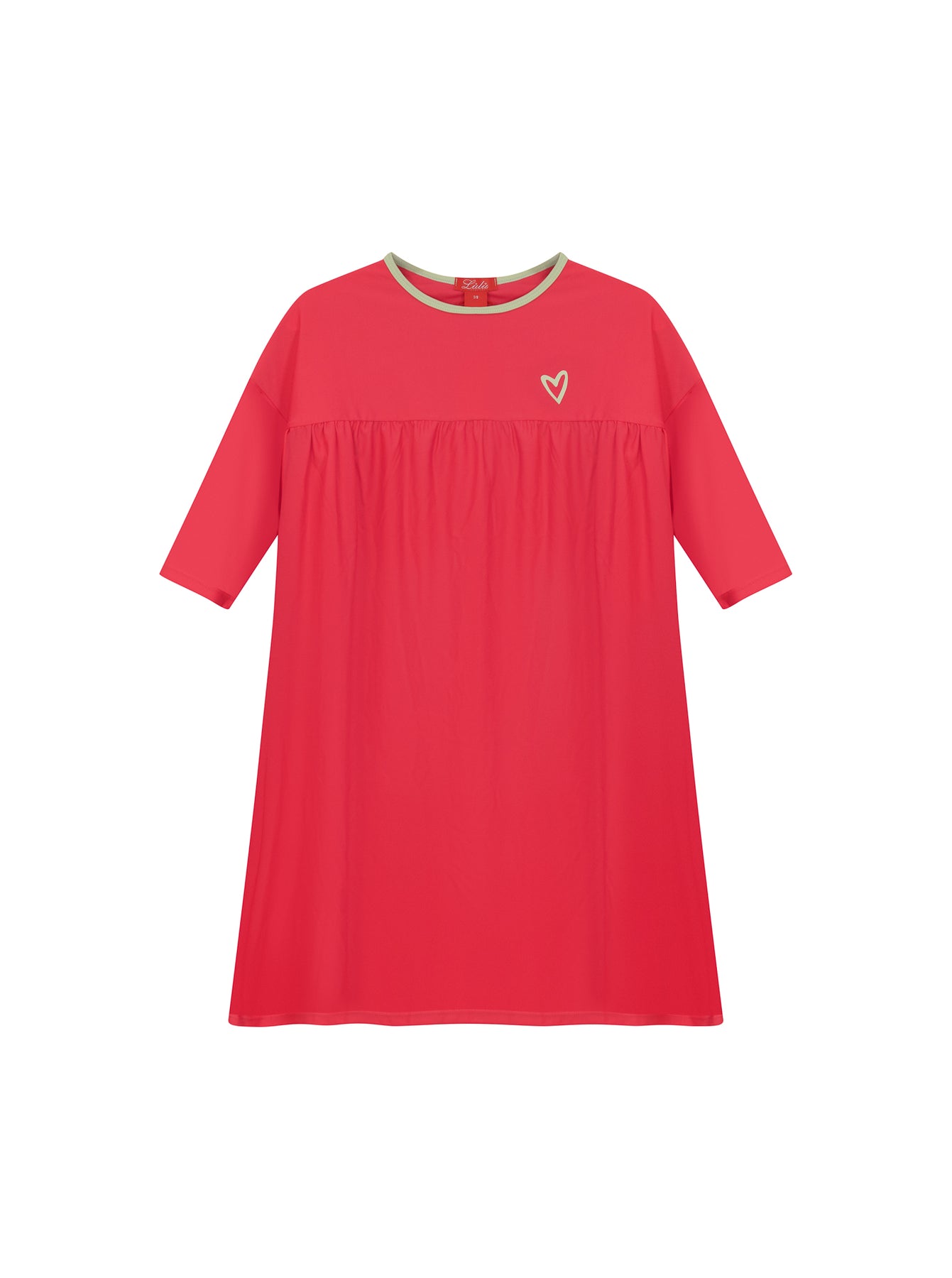 1 Pc. Heart Swim Gathered Dress - Cherry