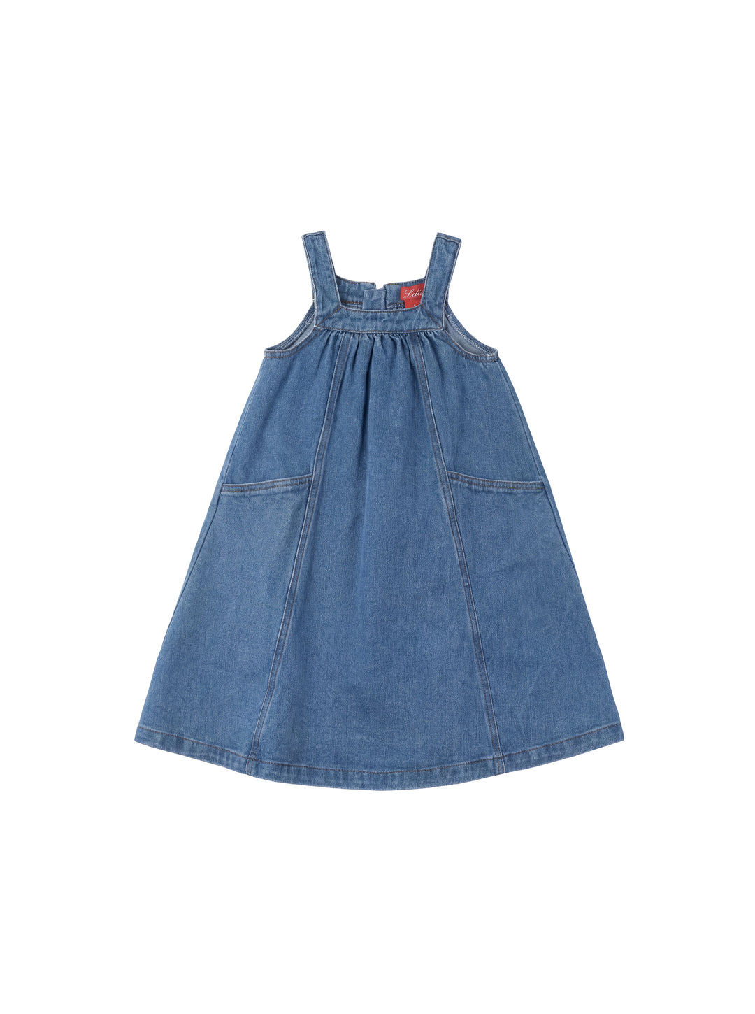 Denim Paneled Tea Length Skirt - Dk. Blue