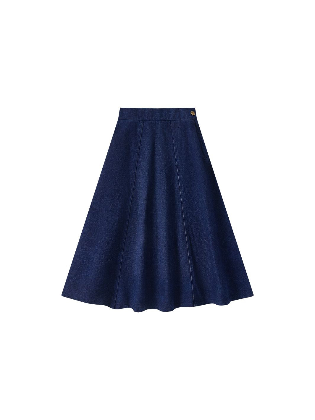 & Lu Denim Paneled Tea Length Skirt - Dk. Blue