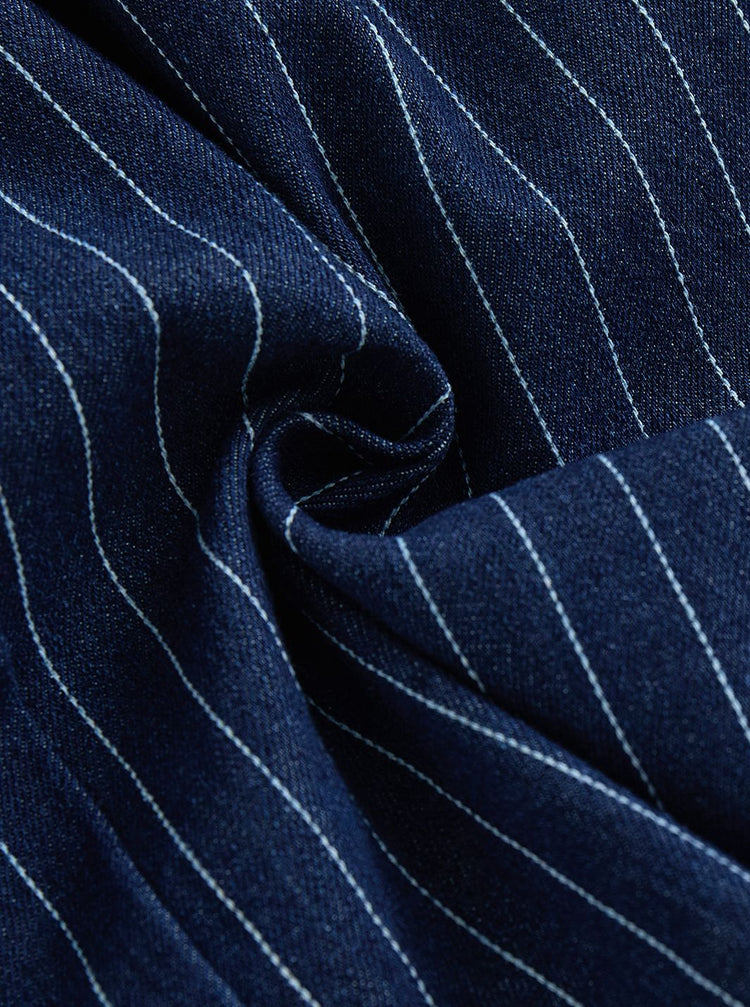 1 Pc. Denim Stripe Pocket Jumper - Navy