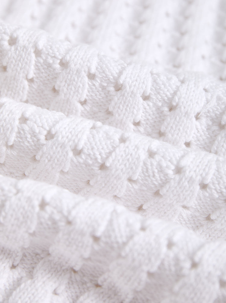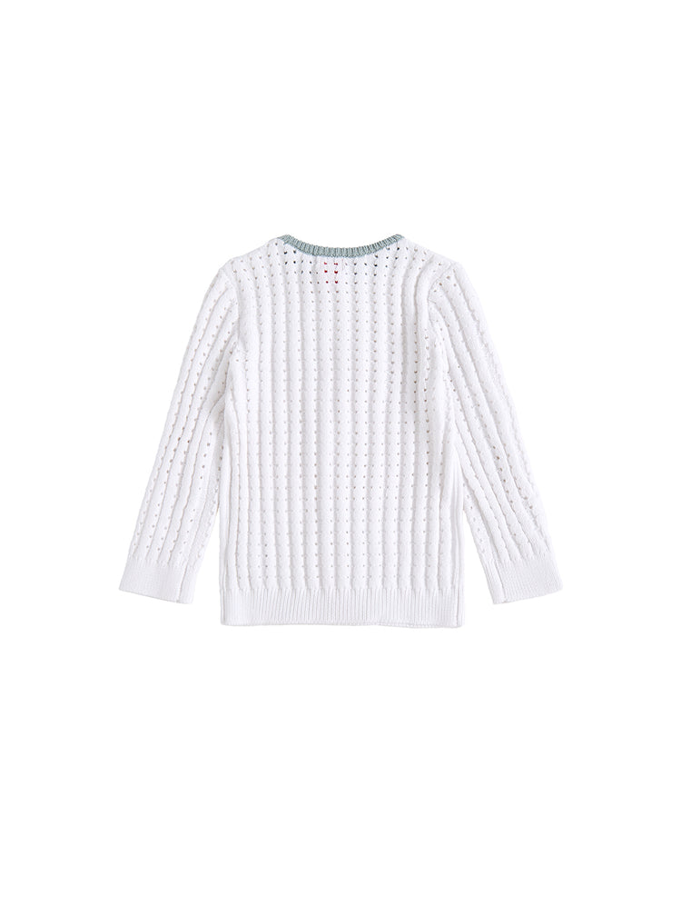 1 Pc. Eyelet Rib Stitch Sweater - White/Smoky Lt. Blue
