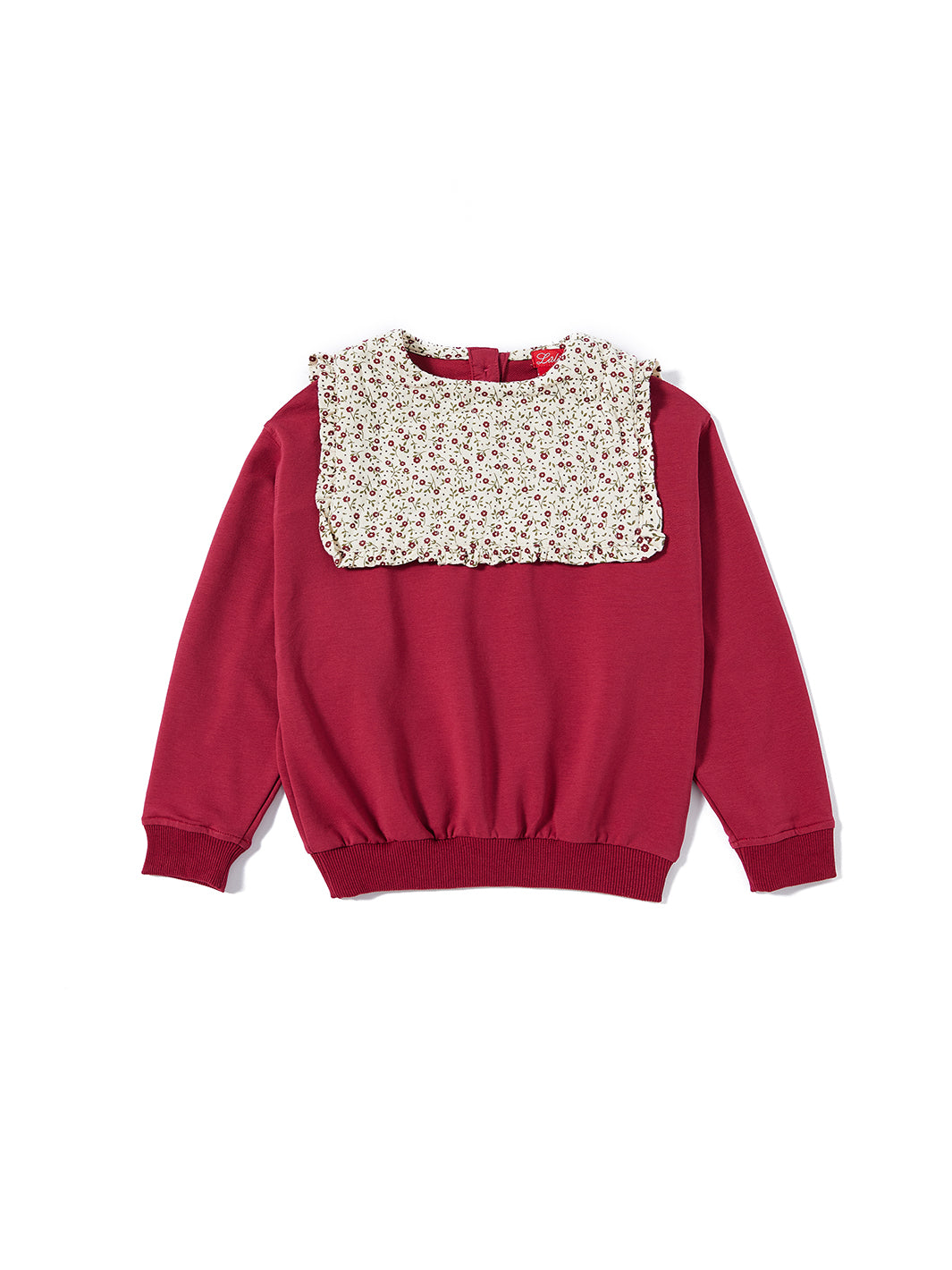 Floral Mock Neck T-shirt - Off white/Burgundy