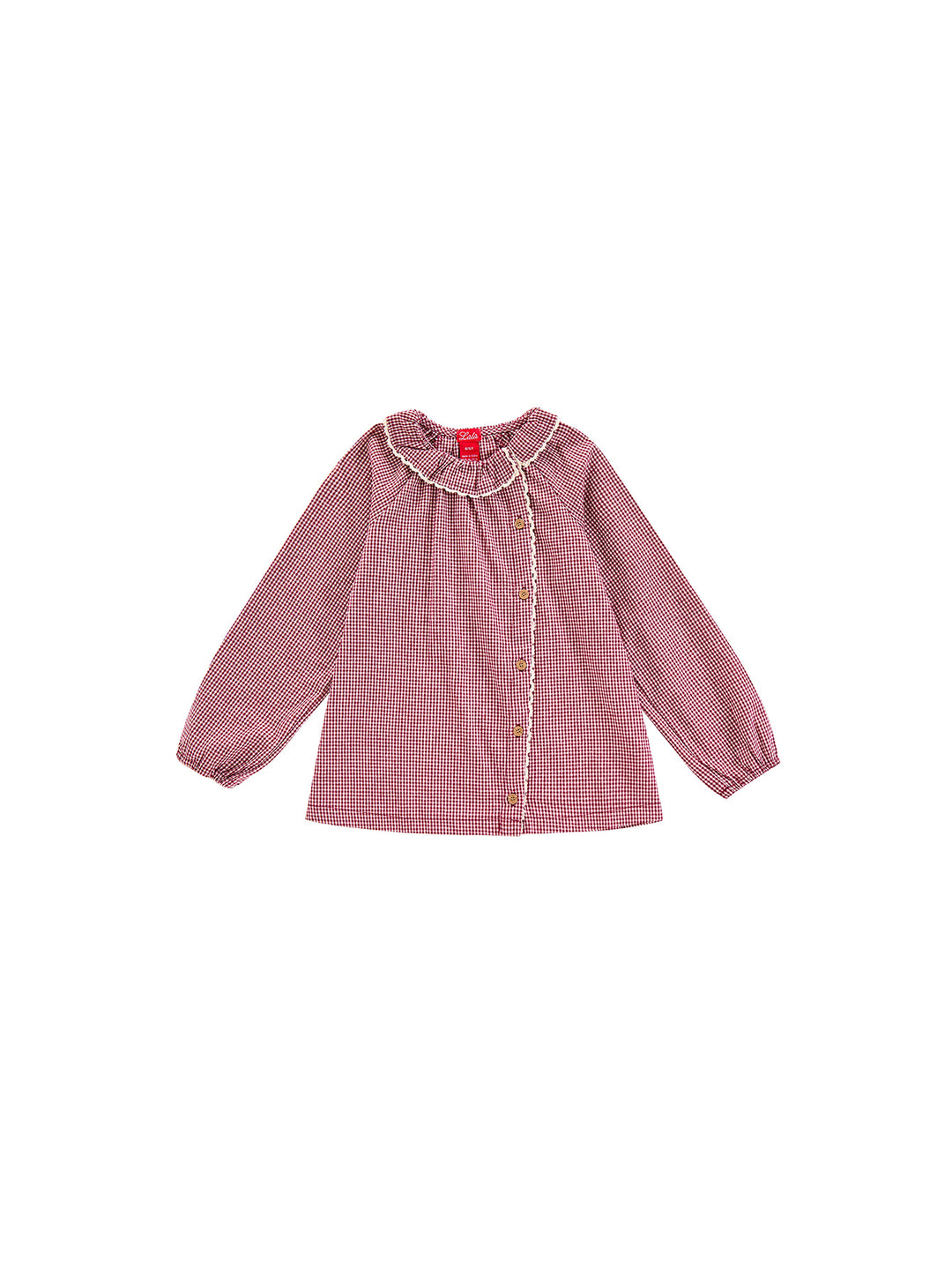 Gingham Ruffle Collar Shirt - Burgandy