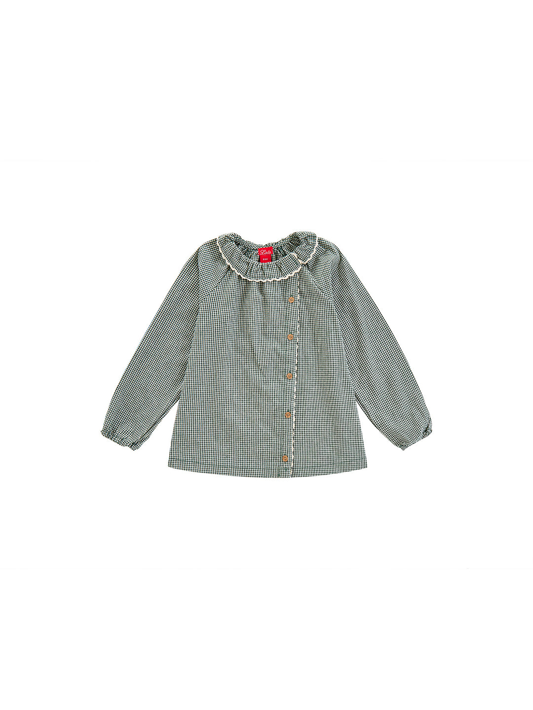Gingham Ruffle Collar Shirt - Green