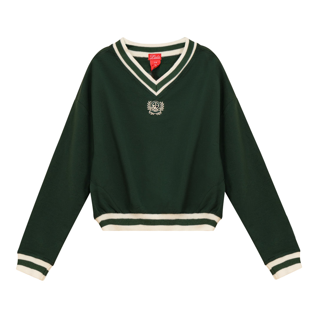 Emblem Combo Stripe Sweater - Forest Green