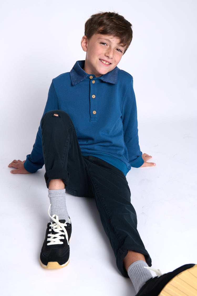 1 Pc. Corduroy Collar Polo - Navy Blue