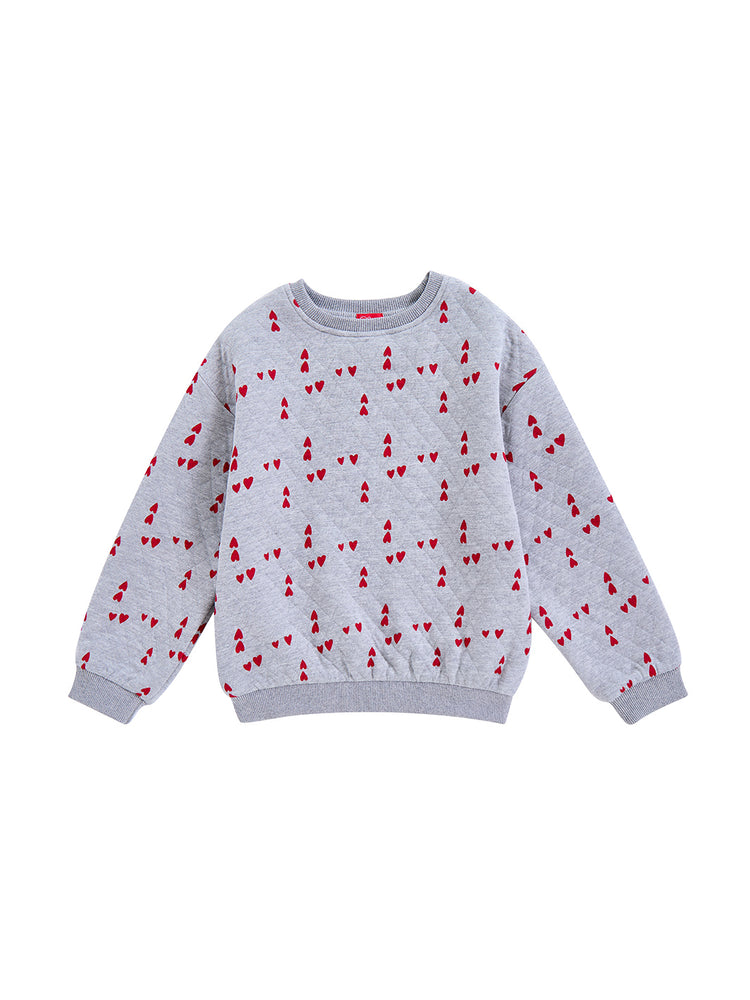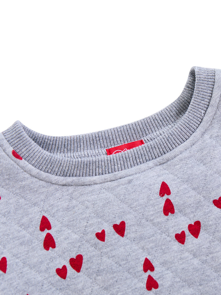 1 Pc. All Over Heart Printed Sweat Top - Grey