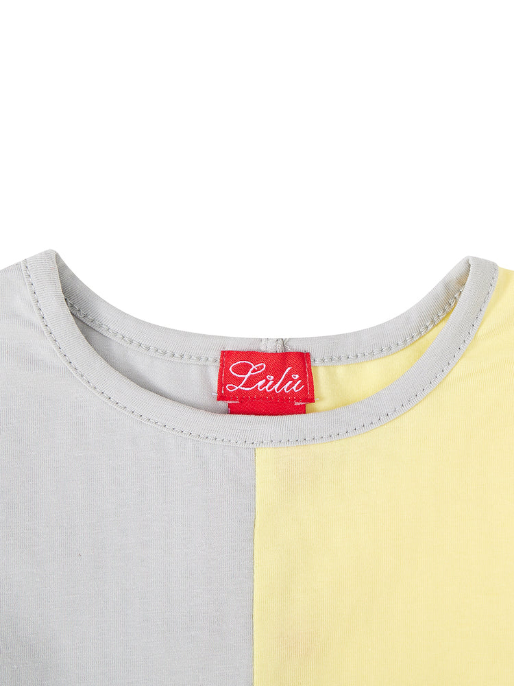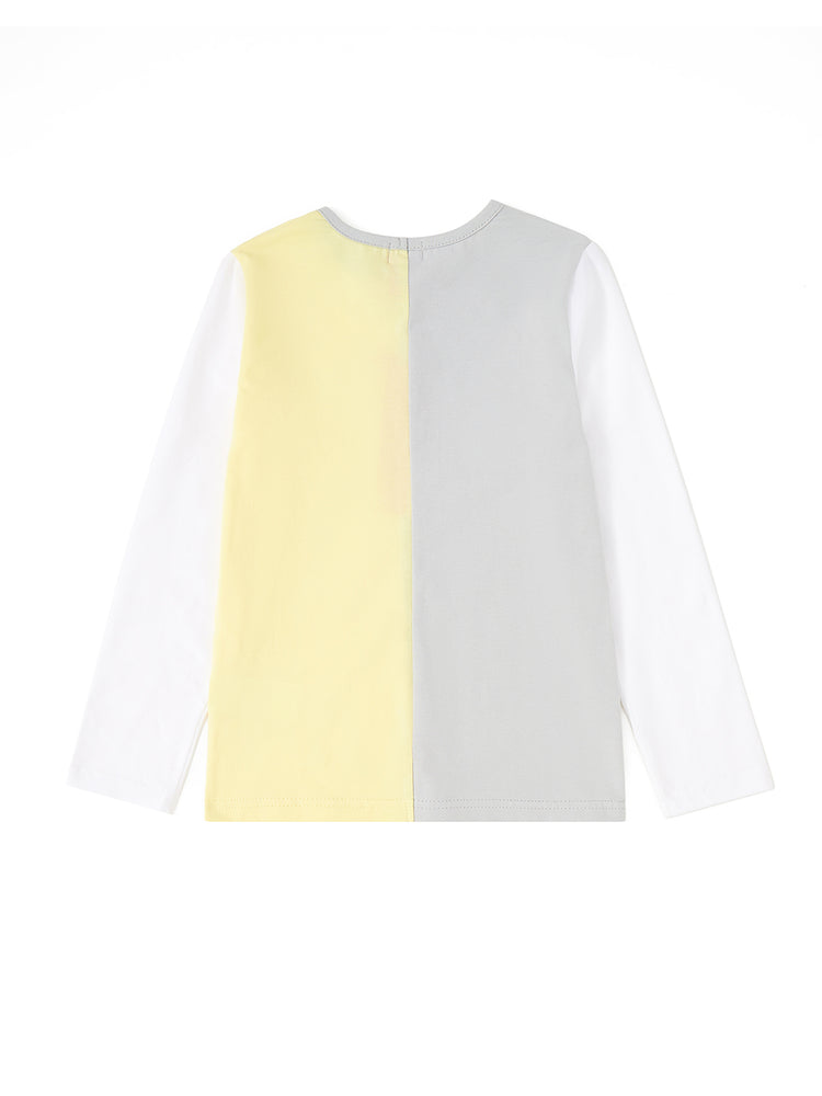 1 PC. Camiseta de manga larga con bloques de color - Verde/Amarillo