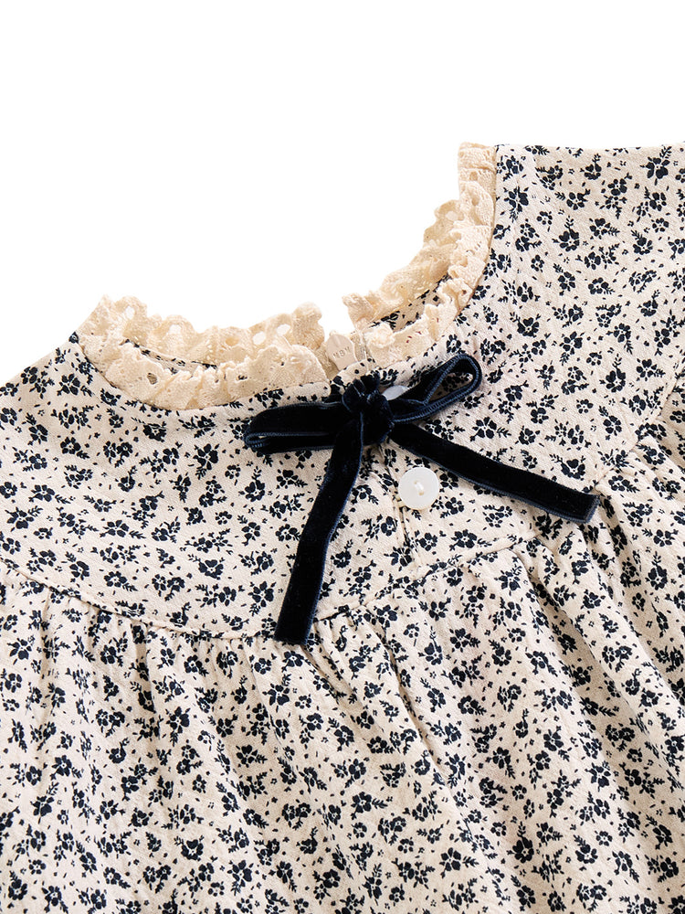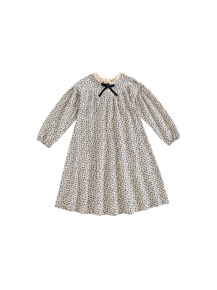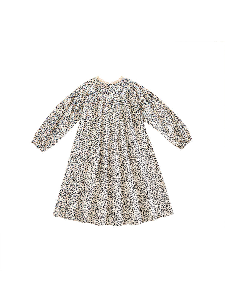 1 Pc. Floral Neck Trim Dress - Off White/Navy