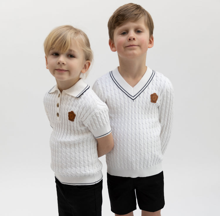1 PC. Jersey de ochos con cuello en V - blanco/negro