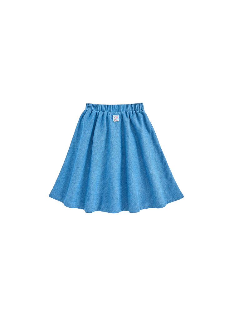 Denim Patch A-line Skirt - Blue Denim