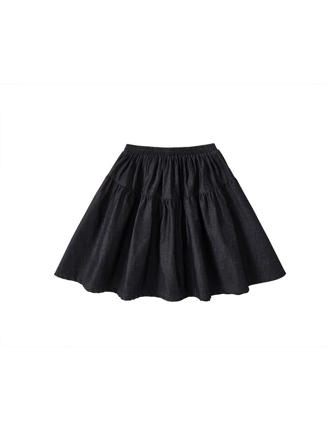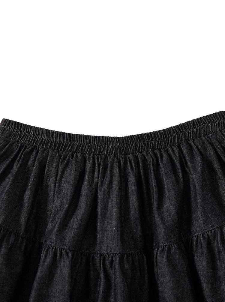 1 Pc. Denim Yoke Gathered Skirt - Black
